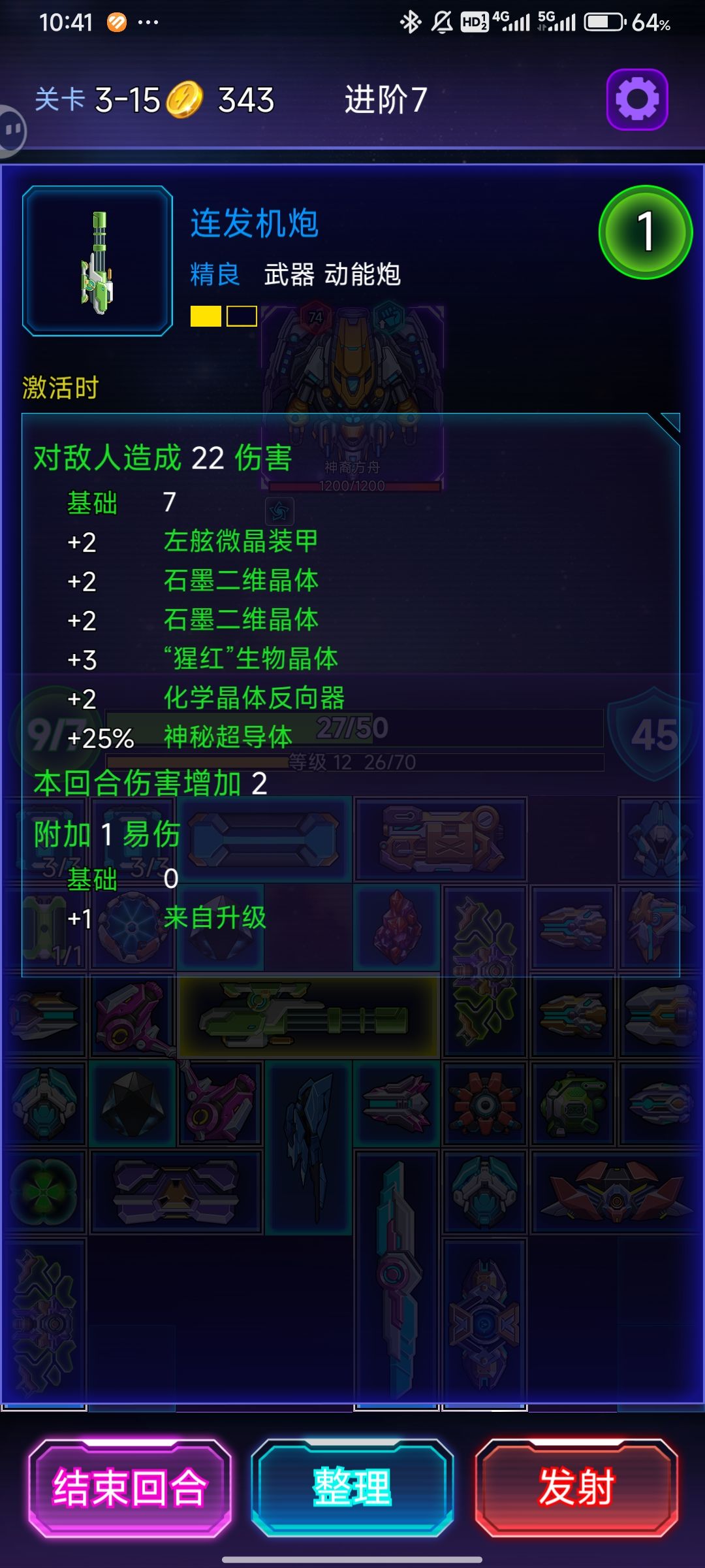 兄弟好,我是猫,又到了喜闻乐见的分享环节。 本期为单炮流思路和本人搭配方法,属于新人用可通关方法,如有不同见解,欢迎来喷。 游戏方法和核心请参考其他攻略 正文开始[表情_吃瓜] 顾名思义,单炮流即用一把武器(当然是很难的)打通所有 1武器选择: 因为只有一把武器,而且武器是伤害构成大头,所以武器选择为重中之重,常用单体武器为连发机炮(激活一次伤害+2),无增幅打满6次伤害期望单回合额外增加42点,
