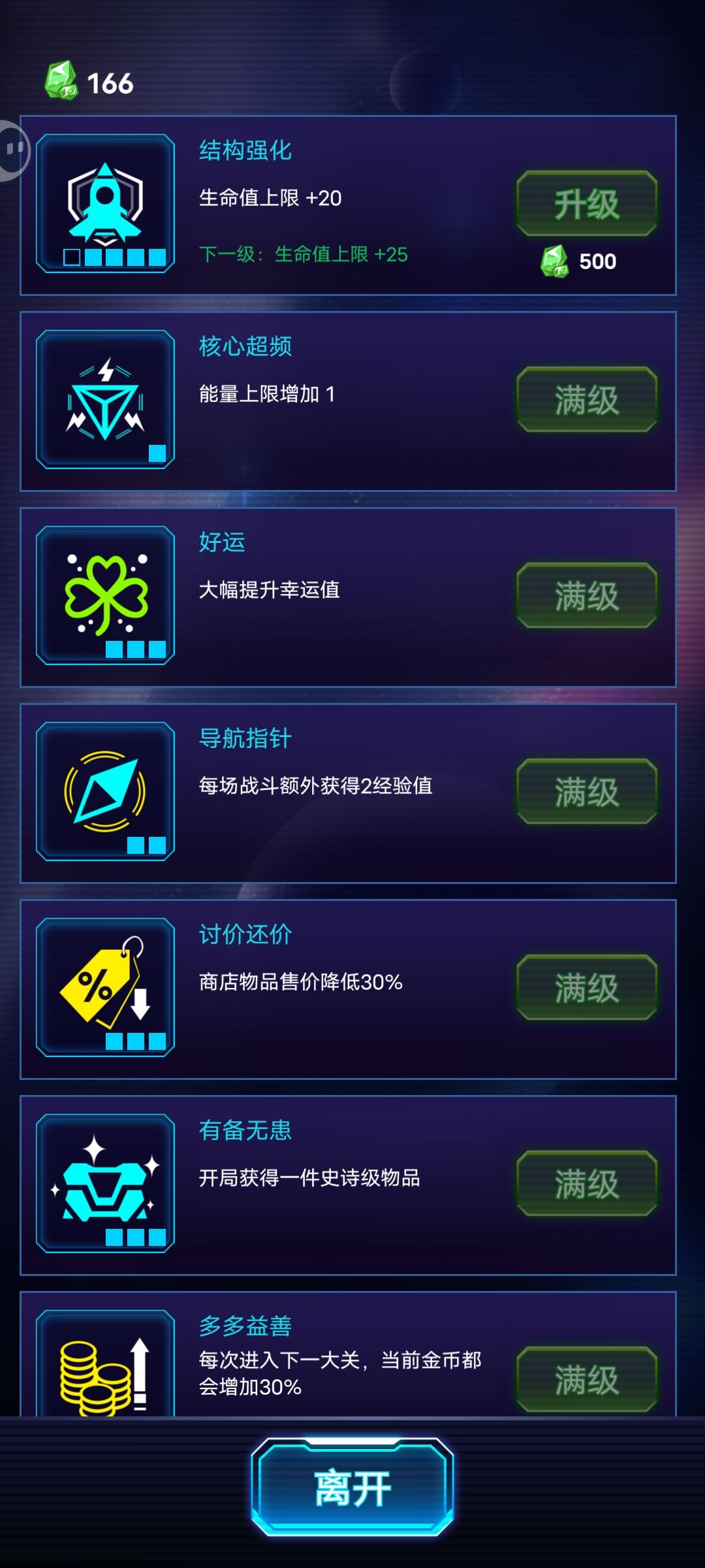 #流浪星舰 目前升级优先点开能量上限+1,然后点有备无患升级满后玩火箭流最简单