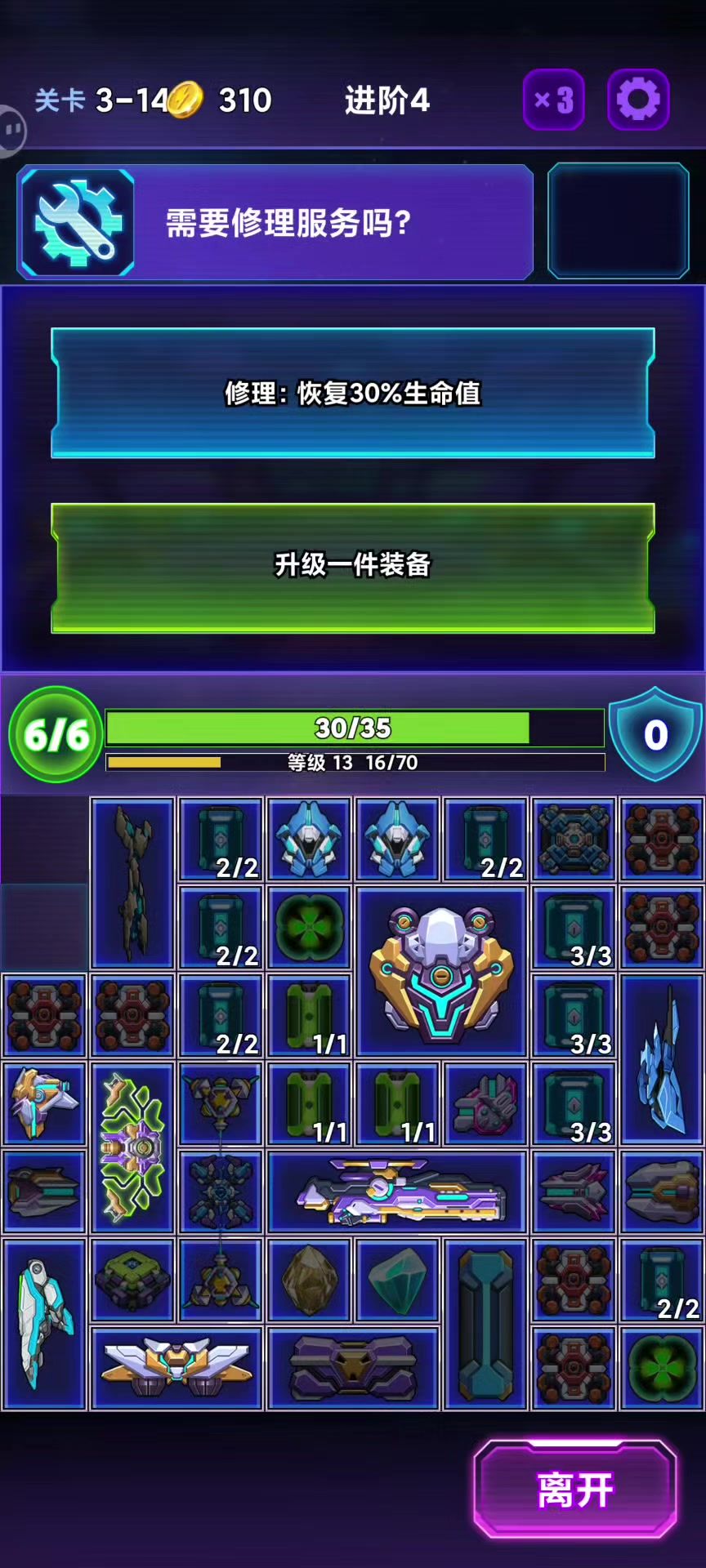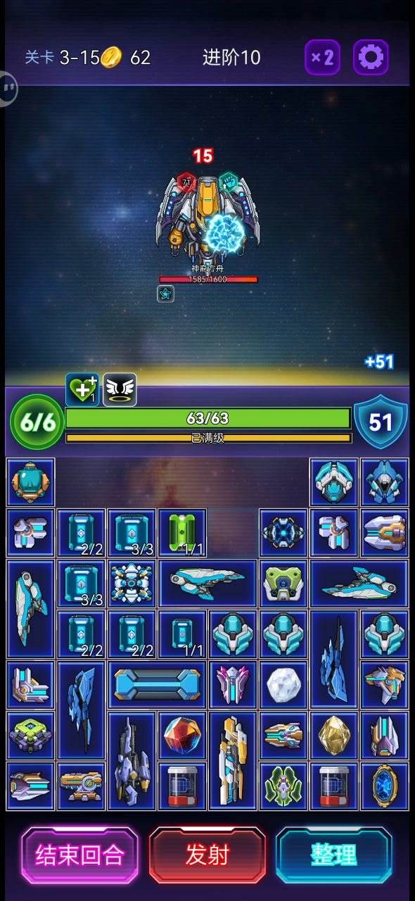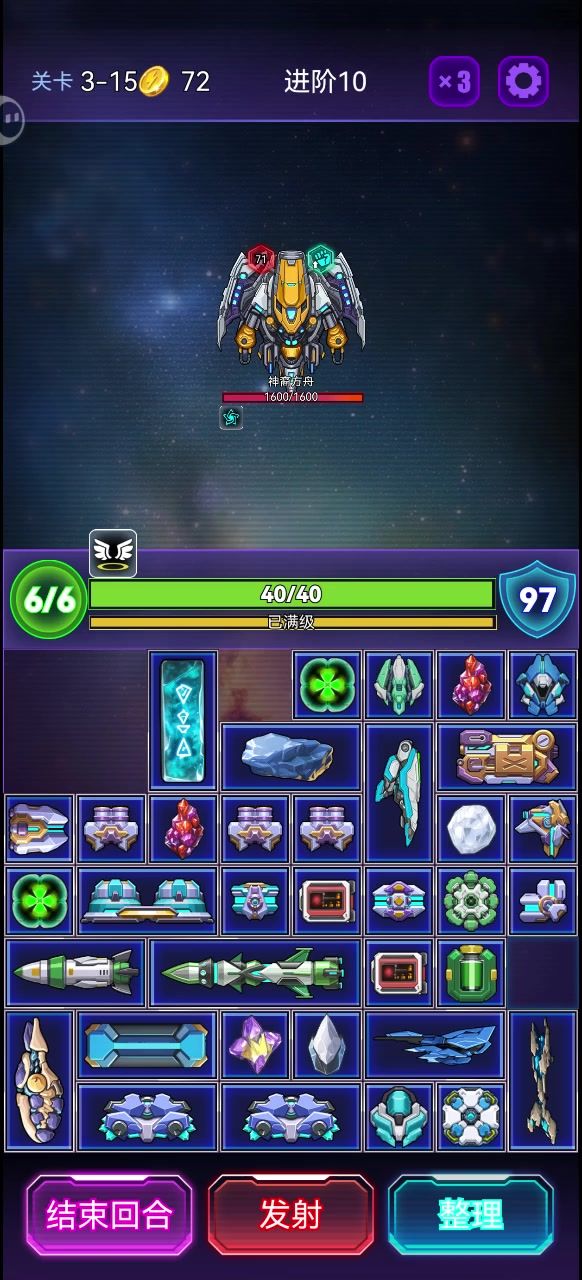 核心就是1费发射器和激活+3相邻武器伤害的遗物,然后能量和0费发射器能拿就拿,稍微堆一下甲前期别死,后期见谁秒谁#流浪星舰