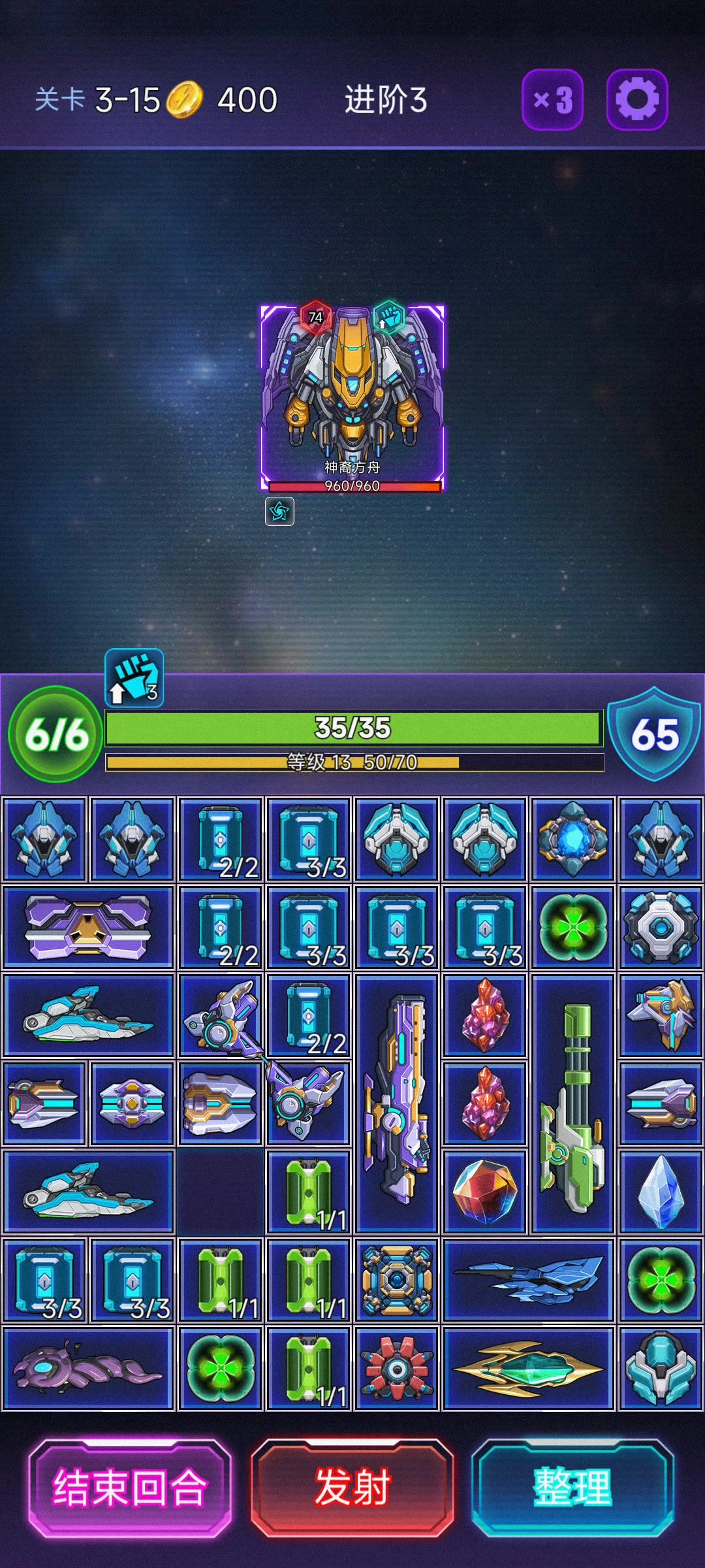 在战斗中轮到玩家回合时,点击右下角的“发射”按钮,能量就会从“能量核心”的尖端发射。能量发出后会沿着发射方向直线前进,直到移出格子面板范围或者消耗殆尽。