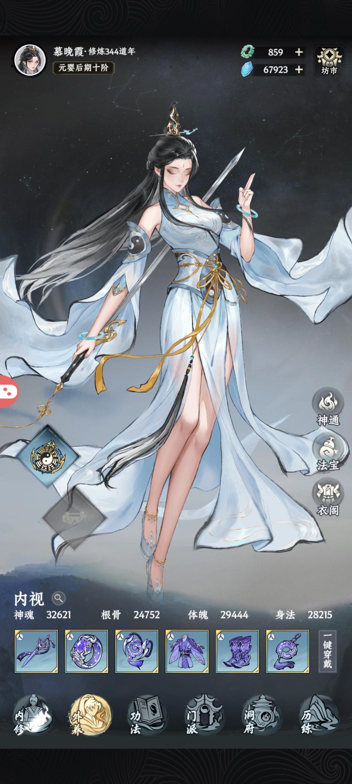 事先声明我没玩过无极,我只玩过凡人传说和一念逍遥,我会按这两种游戏的思路去分析这张图片,看看能不能挖出来一些好玩的,先放张原图,顺便吐槽下这图怎么这么糊啊先看左上角,头像名字没什么好说的,这个道年不知道是不是参考了一念,我还是比较好奇制作组会怎么设计一年是多少分钟呢,据我了解无极一天是强制一百年的,凡人和一念一天是96年,修为境界可能也是参考了一念,中间这两个我猜前面的是氪金买的,材质花纹有