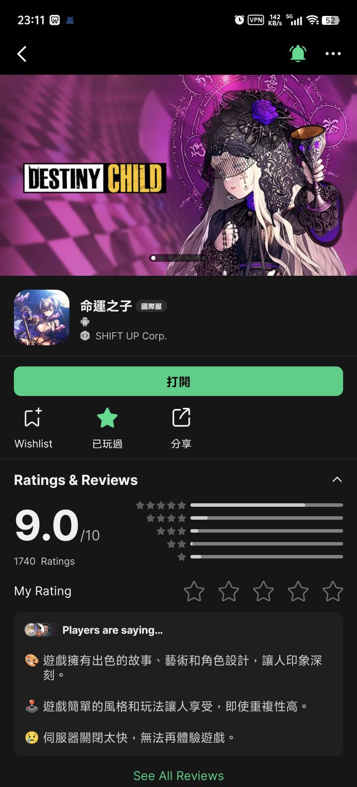 5星期待,还是以前天命之子好玩,但是不知道为什么出了妮姬后就关服了,音乐都很好听,世界boss还能喊大佬来助阵,可开心了,月卡礼包啥的也没少整