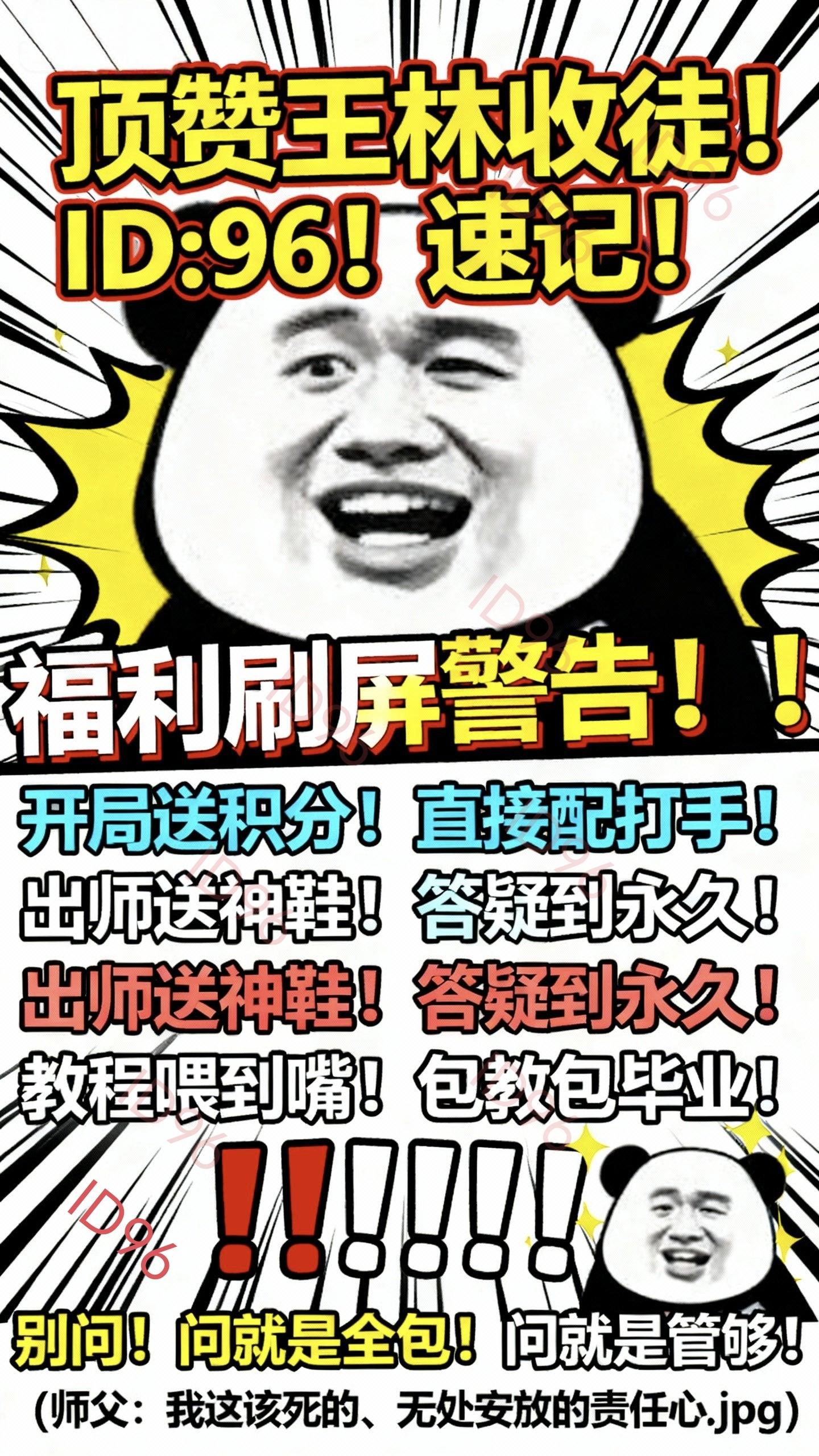 萌新必看!顶赞师傅王林(ID: 96)收徒啦~🎉✨ 徒弟专属福利:✅100积分直接送✅顶级打手陪你闯江湖✅出师就送群攻钉子鞋,走路带风🦶✅师傅有问必答,超有耐心💬✅从零手把手教,包你变大神!🚀出师不离队,持续带你飞~ 速来拜师,一起嗨!😎QQ2903825014