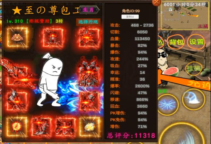 新人攻略: 1.礼包码:我要变强(须在线30分钟领)————————— 2.可以联系客服领取七彩(远攻)武器一把 。出师给(地钉)鞋子。这俩优先强化十星。十星不掉落。————————— 3.拜师: 就是(召唤神兽)技能。土城比基尼雕像设置。无限制召唤。出师奖励积分(可兑换黄金赞助)。还有(群攻鞋子)。很强大。越早拜师越好,百利无一害。————————— 4.幸运:武器超级祝福油+8.
