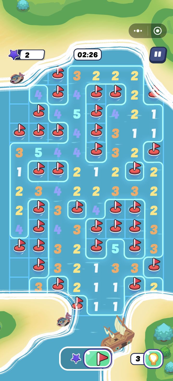但扫雷这个核心玩法和消消乐相比差太多了。扫雷的心流主要取决于地雷比例,但这种控制是不稳定的。同一关卡可能上次玩是死局,刷新之后就能轻松通关。