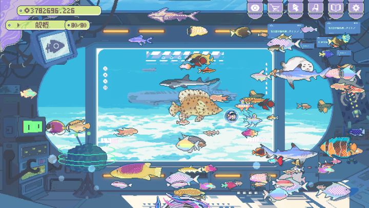 鱼箱在升级满之后真的特别的好看,很多的特效都是动态的。高级的那些鱼也特别好看。我对精致的像素艺术真的没有一点抵抗力。