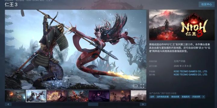 仁王3离正式发售还有4天,Team Ninja的硬核动作续作已经在Steam上杀疯了。截至2月2日,《仁王3》直接冲上Steam国区热销榜第一,全球榜也拿下第三(不含免费游戏),这热度真的有点夸张。游戏2月6日才正式发售,现在只是预售阶段,PC和PS5双平台同步上线,PS5还独占6个月内容。这次最大亮点是开放世界+双流派切换,武士和忍者两种风格能实时切,战斗策略直接拉满。不管怎么说,预售就