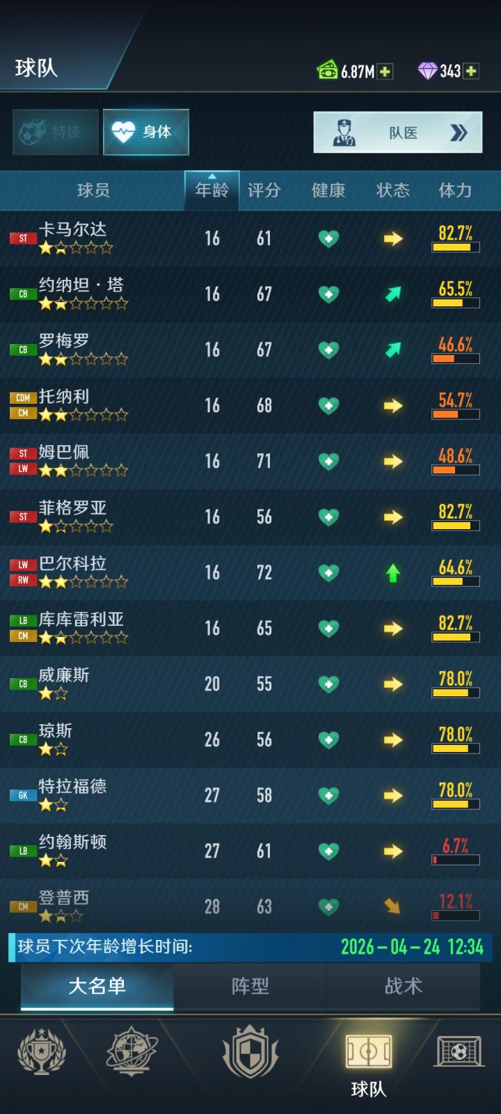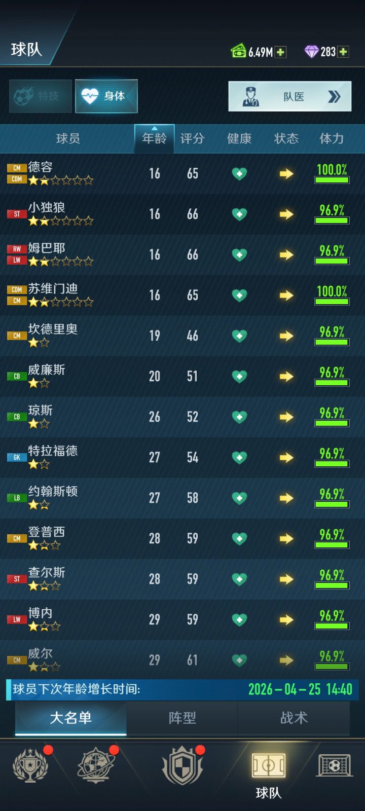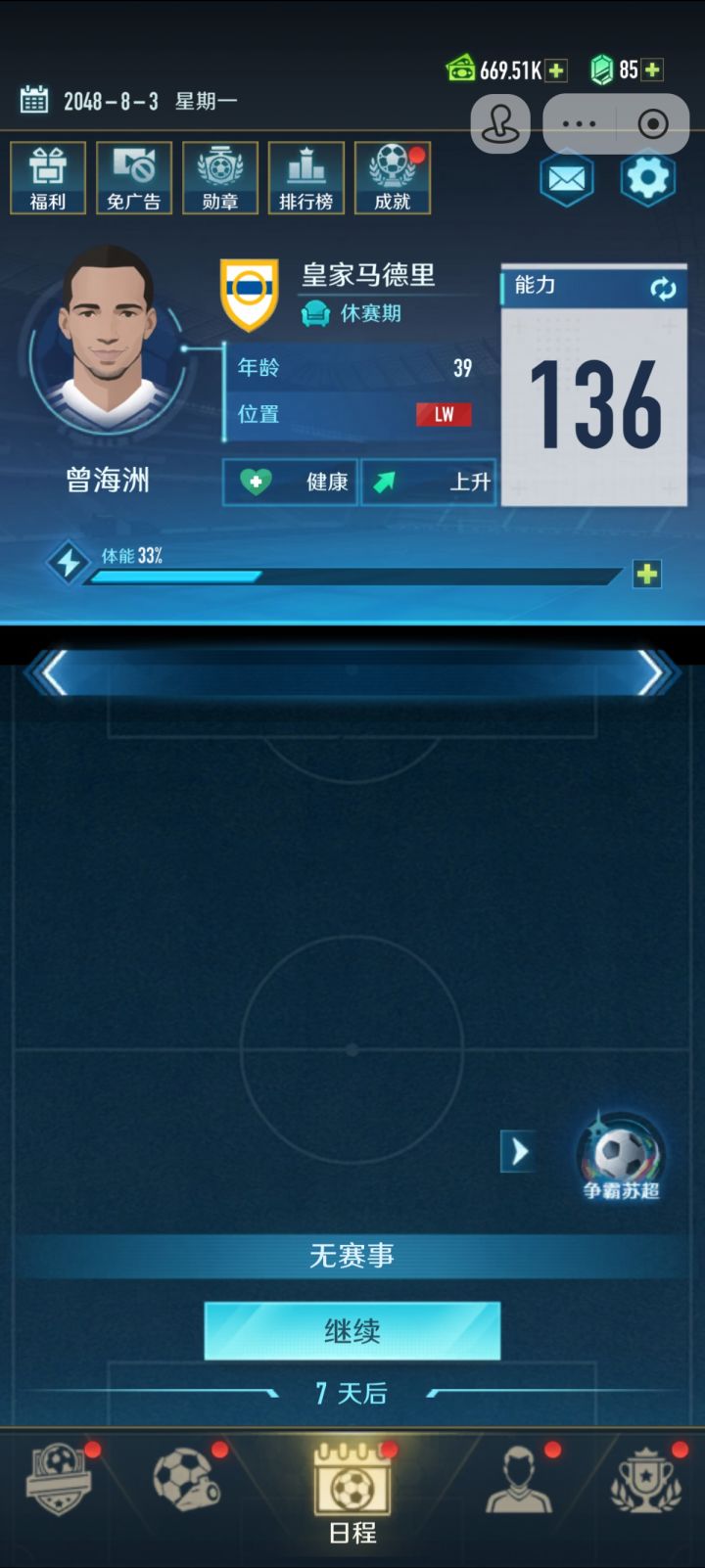 由于46岁强制退役有一些荣誉的截图没截到。说说对这个游戏玩下来的理解吧。先说天赋,我这一世。由于没有覆盖全场,我带的是巨星猎手。由于没有大气晚成我刷到130能力出现后才带上的。由于前期冲的太快没有在低级别俱乐部刷足经验和荣誉。但个人觉得巨星猎手很好用。1,天赋一定要有天才少年和大器晚成。经验加成给的多。25岁时100钻石切换。2,覆盖全场。巨星猎手。3,团队至上。训练机器,提升休赛期训练