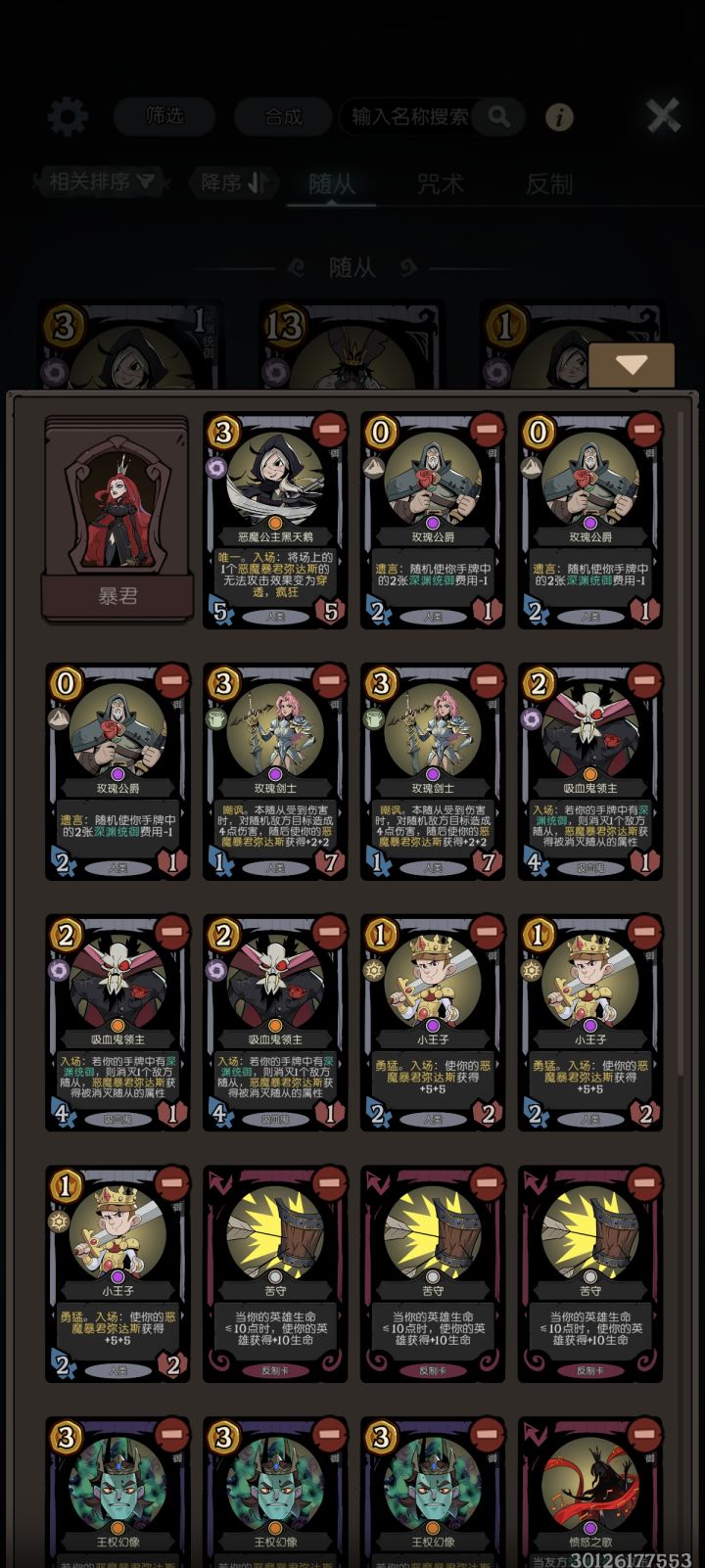 新版本之后,设计师大幅加强了人类卡组,短剑和掌灯的效果直接翻倍,那么毫无疑问地,现在天梯就成了人类帽的新王朝。思路分析:这套牌的主要启动点有三个,分别是短剑、掌灯人和玫瑰三种。由于三者均需要大量的攻击牌作为启动资源,因此这套携带了外婆+多多益善的高效刷攻击牌的组合。除了启动组件,蛇+黑天鹅的优质过渡体系、玫瑰公爵的减费也为整套卡组润滑了不少,实战期间这套卡很难卡手。这套牌由于不害怕雾海以外的