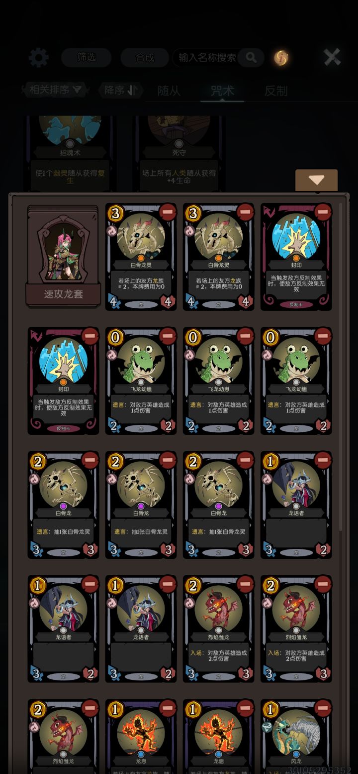 卡组性质:娱乐,后手/卖血,控制/冻结,反反制英雄选择:小木匠(看起来就是人畜无害的,印象中会疯狂往墓地塞狼人的,很能铺场站场的)可以为我们的猛犸提供+1攻提速斩杀我们什么都不出手可能给对面一种开局狼人之影卡手了的错觉带牌情况:3生物,6法术(1金币2冻结1抽牌定向抽猛犸象2反反制),3反制(多多益善可以看着换其它优质反制牌比如次元魔法)代码在评论区,这套卡组可能