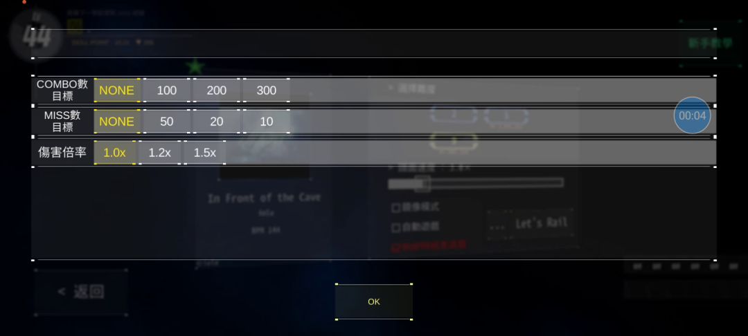 COMBO数目标:100 MISS数目标:50 伤害倍率×1.5