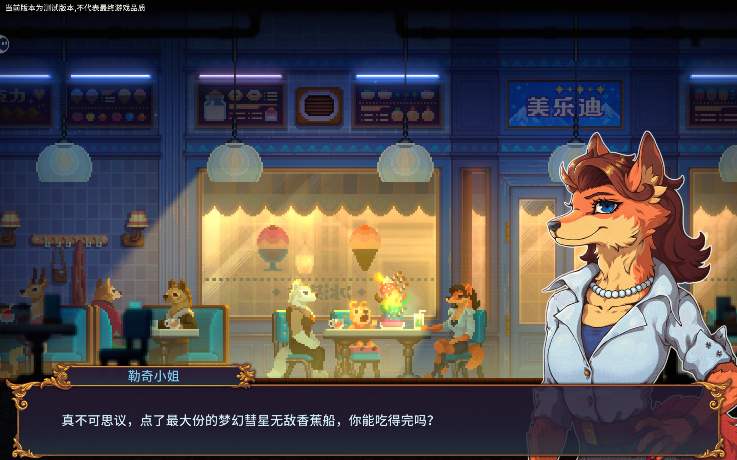 简单玩了一下观感还是非常好的,试玩剩余部分打算慢慢品鉴,期待一下正式服上线以及完整的游戏体验😋 1.没有配音但也能有很深的代入感,配乐非常的贴近场景,无论是夜晚上山时的那种静谧又暗含危机感的氛围,还是与记者小姐(记不住名字致歉)在冰淇淋店伴随的小孩一直啊呜啊呜的吃东西声音 都代替了配音,在游戏中起到了锦上添花的作用。2.极具特色美术风格的场景与拟人角色,丰富的信息量。我没按照他那个任务提示,随机找路人对话,也能包含很多的信息(和冰淇淋店员对话发现还有锁起来的信息点,可能也是伏笔?