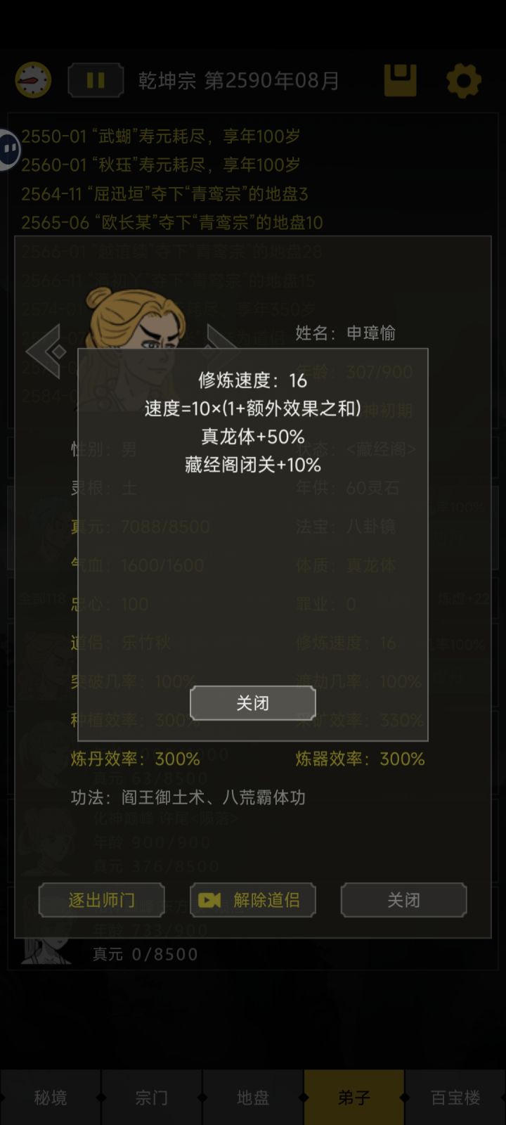 1.存档没什么卵用,突破几率低,还不能读档。 只能看着想要培养的弟子一个寿命耗尽。2. 20年才能招一个弟子,弟子想要续命就得突破,想要突破就得炼丹,想要炼丹就得采集材料,采集材料就得弟子多,想要弟子多???20年才能招一个,招一个的时间,又得死一两个。。。死循环。