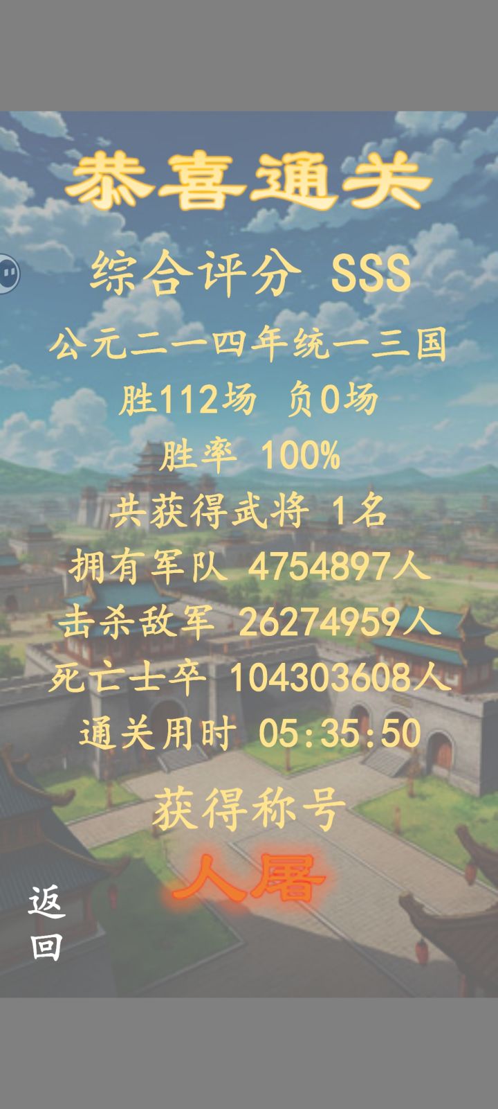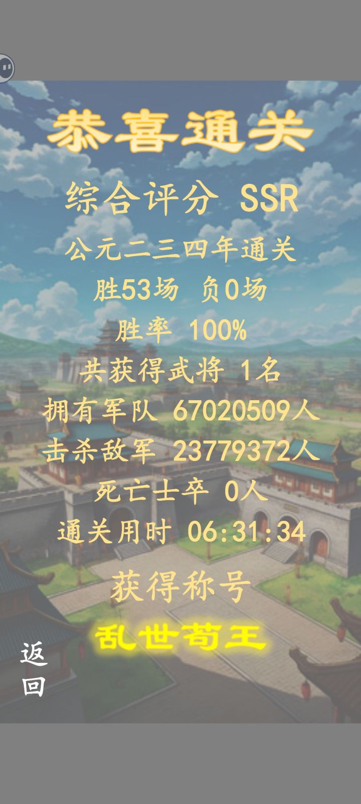 作为一个三国武将游戏,结果连最基本的武将界面都没有,更没有所谓的武器,装备等界面,只能说设计得很烂,完全没有肝的动力,更别说武将获取难度大,打赢了也不能俘虏或者劝降之类的,武将也没有所谓的忠诚度。再一个,游戏不能自动推进进度,不打别人就没有金钱收益,对于新手玩家极度不友好,不能靠攒兵碾压敌人,而且敌人的兵力增长速度太快,玩家如果不能快速攻占城池根本打不过。总之,这游戏不怎么样,没啥玩的动力
