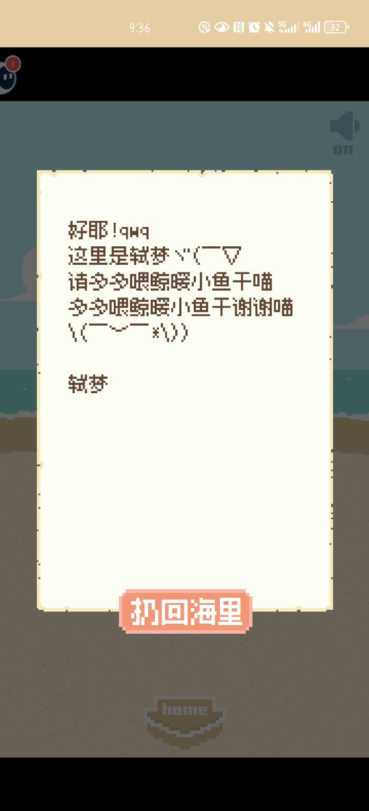 很可爱的游戏吧,但是感觉玩法有点单一😘认为可以加一些新的东西,比如说互动什么的,而且贝壳如果重复了也没有地方用,我觉得可以开展市场什么的呀🌝