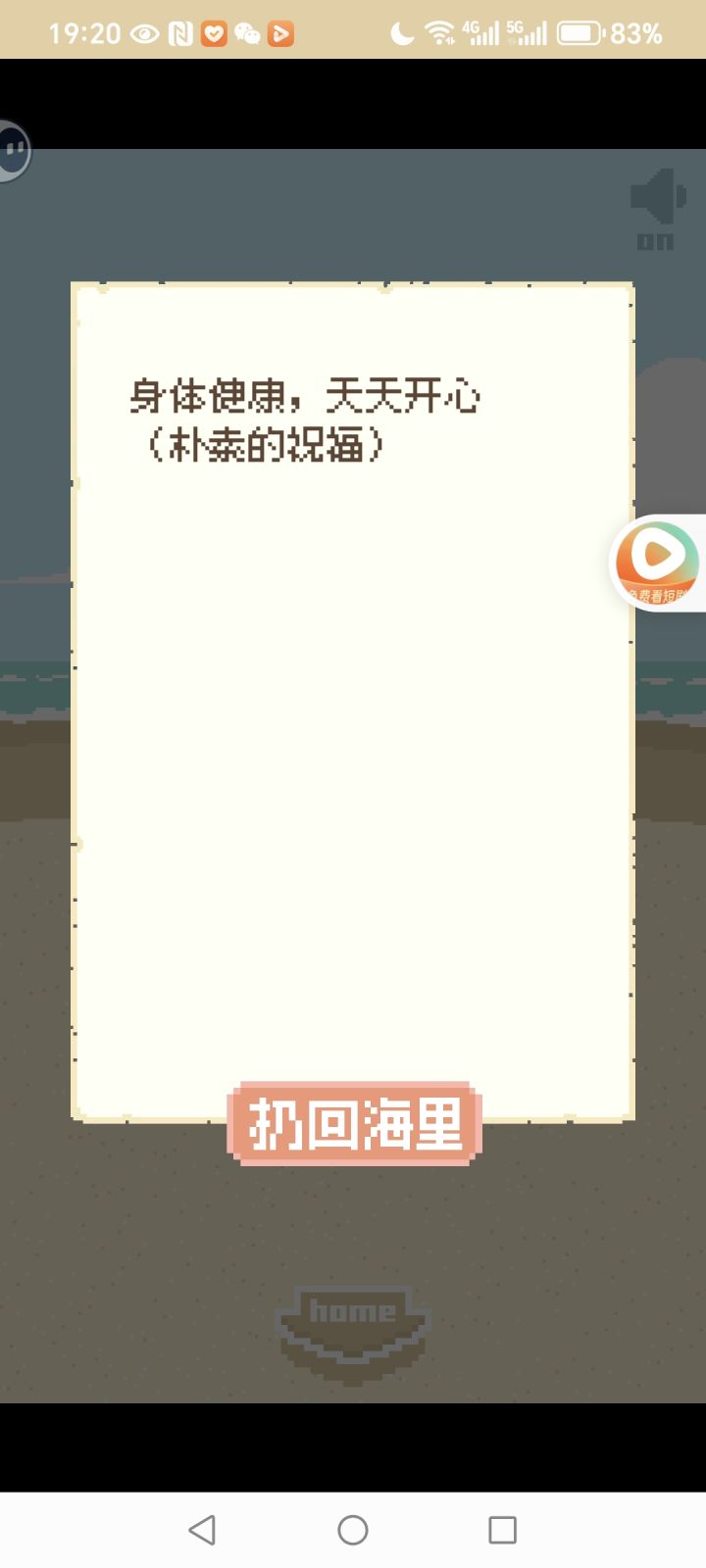 嗯,我觉得玩法有些单一,主要就是一直刨沙子,然后解锁图鉴(?我好多贝壳🐚没用,希望能做成菜什么的或者装饰画,再或者合成物品做服饰,挖点石头树枝,飘点塑料瓶来,造小竹筏飘去另外小岛,解锁地图,再来个涨潮退潮,退潮有石头下面有螃蟹🦀什么的,以及小水洼里面有小鱼