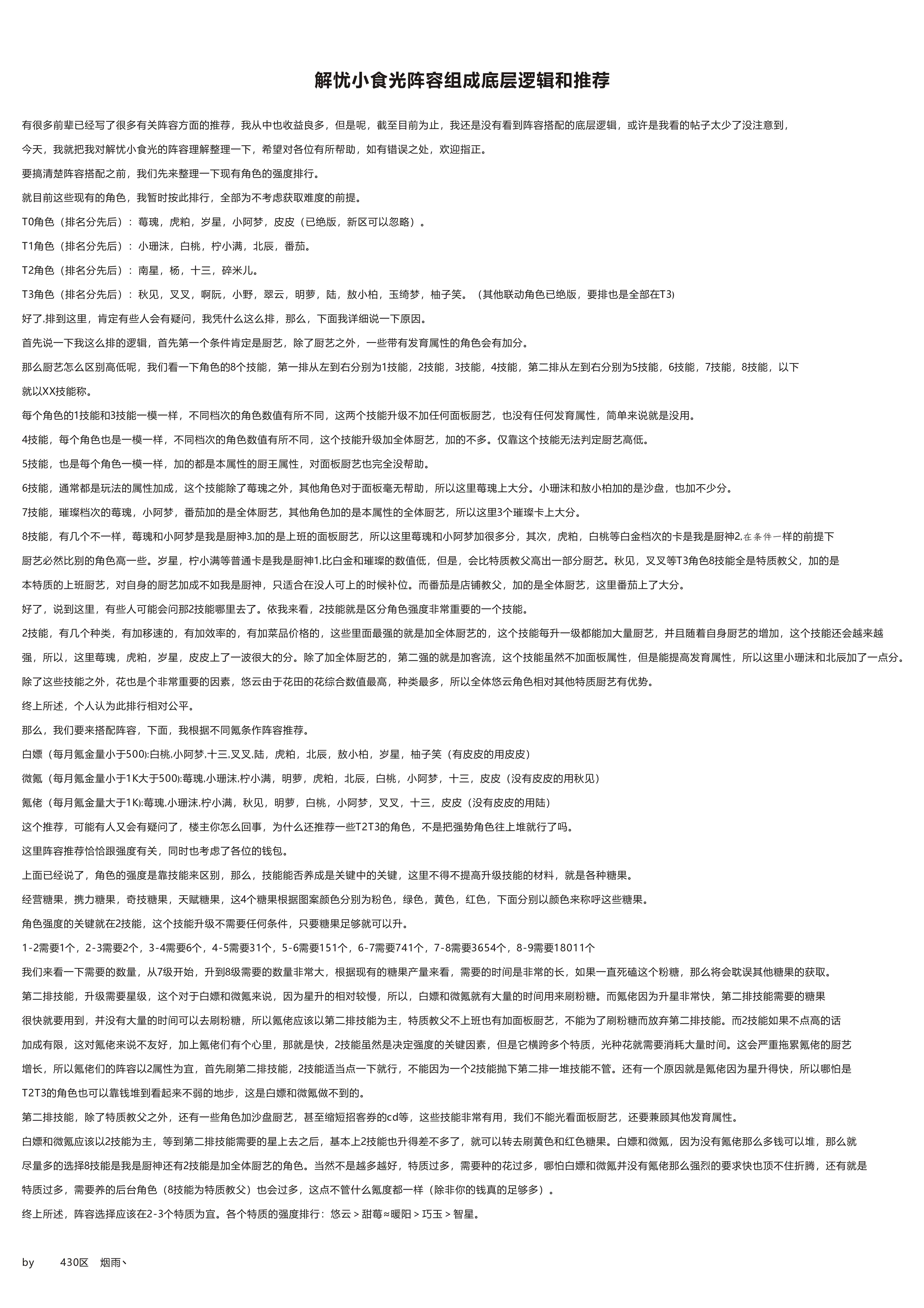 #解忧小食光攻略 #萌新攻略 玩这游戏也两个多月了,在这里总结一下吧,发个长攻略给各位刚入坑的萌新们想说的有很多,只能是想到啥说啥(有不明白或者我说错的可以提出来) 1.肯定是萌新都关注的阵容问题了,前期有特级上特级谁星高上谁就行,后期零氪微氪都是推荐玩5甜莓(陆,十三,白桃,叉叉,小阿梦)+5智心(碎米儿,玉绮梦,南星,翠云,番茄)其他不做推荐,做了联动活动有皮皮的可以上阵皮皮,换下星级最