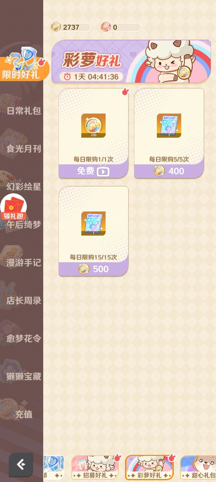 1.通过每日任务获取,P62.榜单喝彩也不能忘,P1和P23.领取每日补助,P34.限时活动中的彩萝好礼可通过广告获取,P45.店长周录每日签到,P56.通过广告成就薄看相应广告次数获取,P77.店员升星厨艺,P88.通过指定角色剧情,P99.日常礼包中柠檬好礼的每日补助,P1010.沙盘挑战收集星星,P11如有遗漏可以补充哦,这只是零氧党获取彩萝币的方法,氧佬可以直接氧金U