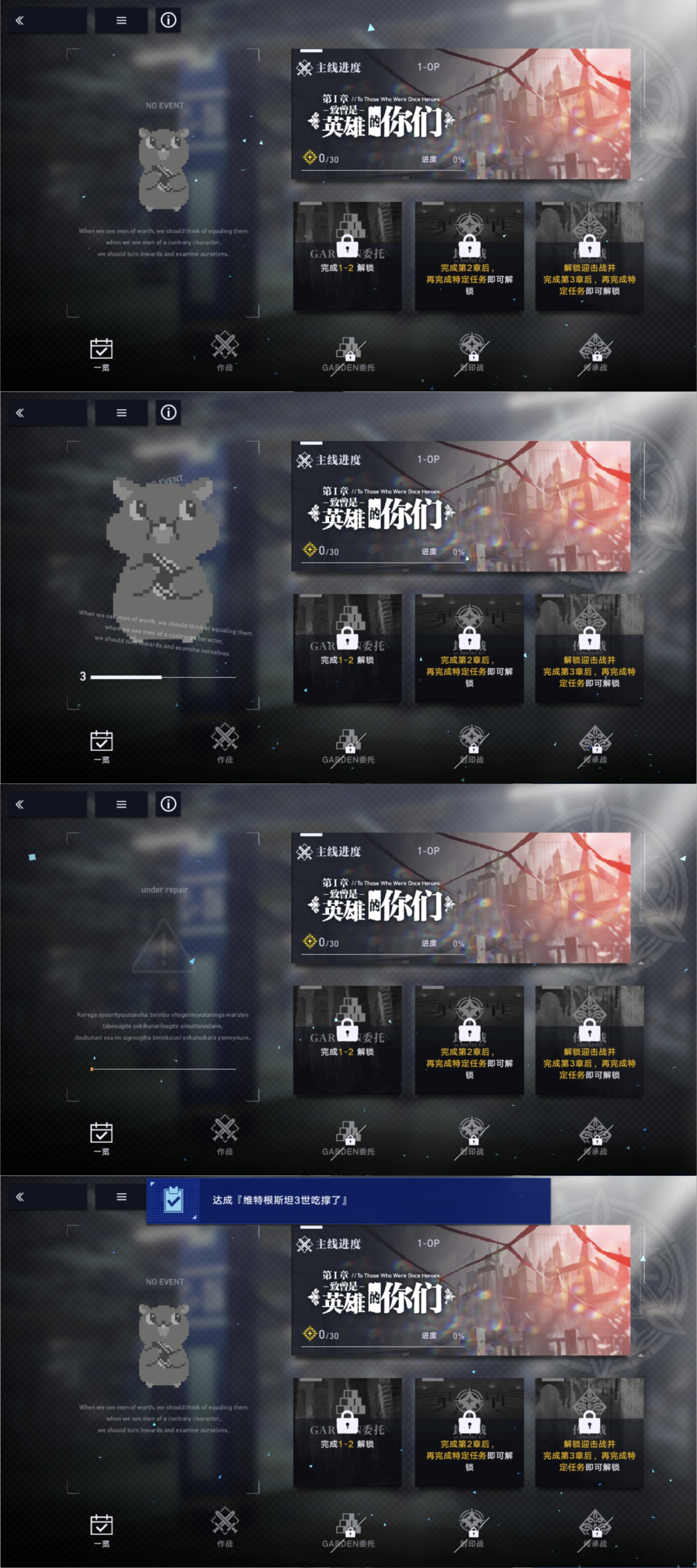 ①作战→一览界面左侧仓鼠连续点击,出现掉瓜子小游戏打通后仓鼠再回来(流程大概5min内,瓜子漏掉也没事,建议在还没开启活动的时候完成,有活动的话这个仓鼠会活动被盖掉)如p2