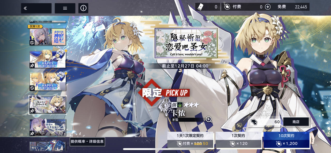 新年前,Garden出动了剑锋凛光和千紫两个骑士团收集材料,顺手讨伐了名为巳餐人的神明,并回收了魔剑御神乐。实话说,强度这么高的阵容,想要打输实在很难。又是一年过去,虽然骑士们的年龄已经无从考证,但守护人类的决心没有变,实力则是更上一层楼。然而,“听说有人700抽没出圣装卡侬”,有传言称,契约获取骑士的难度也在水涨船高。Garden方面一口咬定,这些传言全是捕风捉影。好在我已经采访了当事人久条命