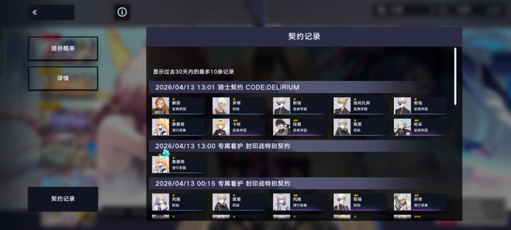 「骑士契约」更新了哦ฅ(ΦωΦ) ฅ直到2026年4月15日(三) 03:59,与图中骑士的契约概率会提升哦~同时,「记忆解析 CODE:DELIRIUM」也已上线🎮🌊详细内容请在游戏内确认🐾#溯回青空