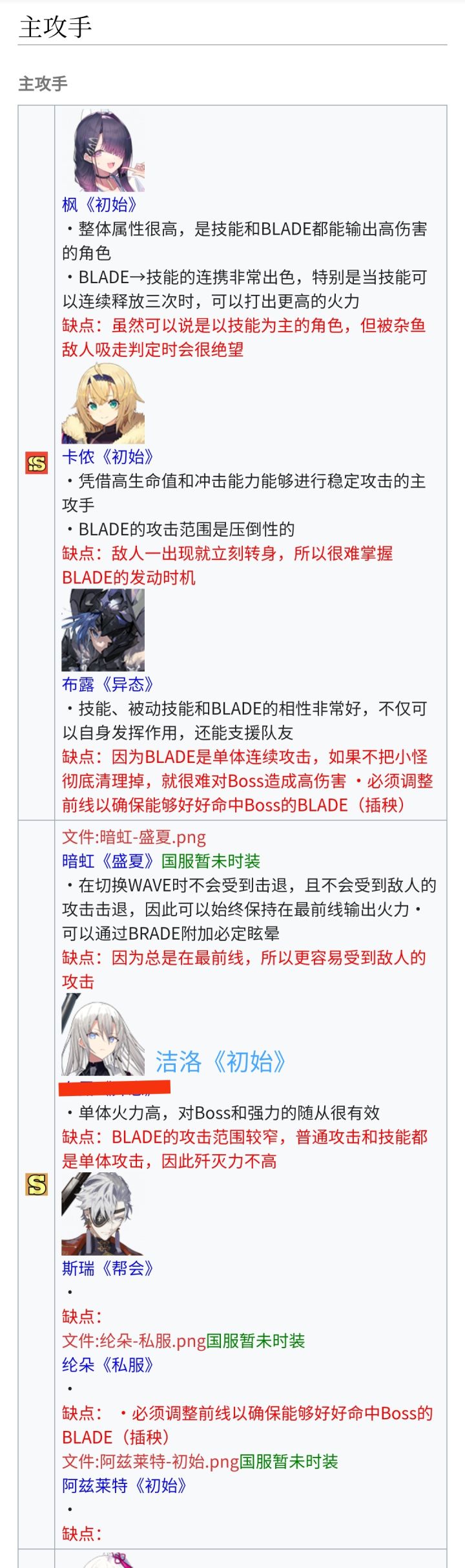 国服wiki的各职业角色强度和推荐