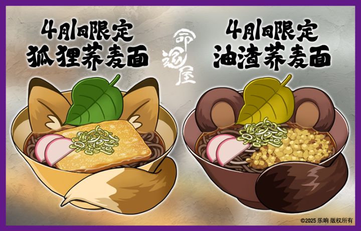 「狐狸荞麦面」与「狸猫荞麦面」即将上架!能够让人沉浸在满足感与幸福感中,仿佛身处梦境般的「狐狸荞麦面」和「狸猫荞麦面」,马上就可以在荞麦面店·命运屋吃到咯ฅ^>ω<^ฅ限时登场,千万别错过!售卖时间:4月 1日 00:00 ~ 4月 1日 23:59(注:「狐狸荞麦面」与「狸猫荞麦面」售卖期间,「怦然心动!拉面夏日物语」将暂时下架哦~)