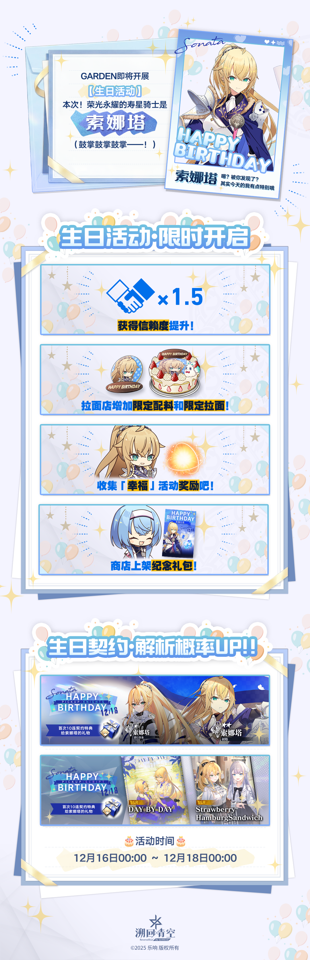✨ 索娜塔生日祭2025 ✨🐾━━・━━・━━・━━・━━🐾12月16日是索娜塔的生日哦🎂🎊 游戏内也正在举办特别的生日活动ฅ(>ω<ฅ)#溯回青空 #rxr
