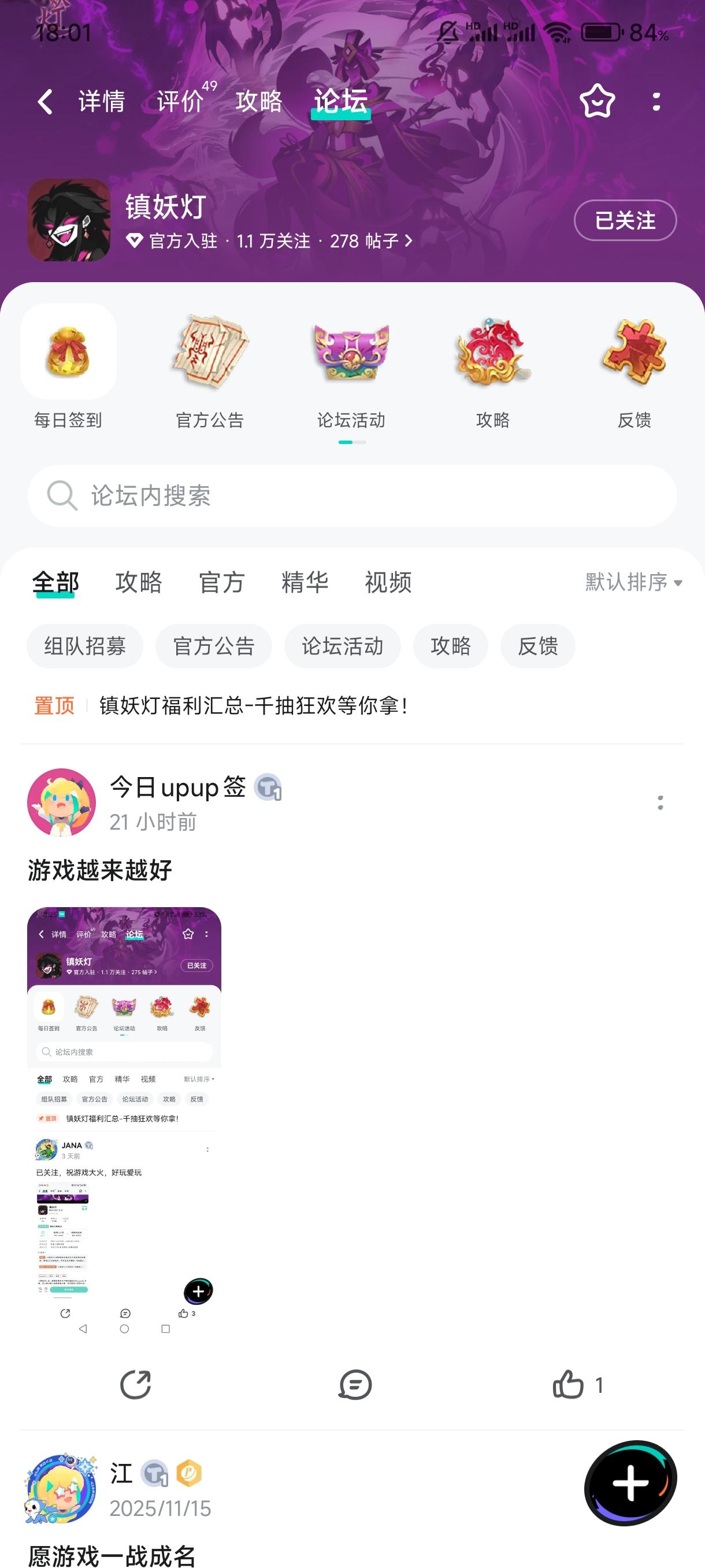 已关注愿游戏越做越好,蒸蒸日上,未来无限精彩!