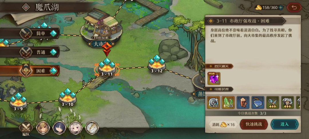 看看你家的3—11,两秒出两个小怪没停过,boss血厚攻高1w血米拉上去挨两下大半血没了给我看笑了,说是拼输出除非能上去给他秒了不然后面小怪一出很难打,而且前面还设计几个小关专门耗蓝量来的,我真没招了,除非等后面直接等级数值碾压,目前短期是拿不下来了,一颗星我不要了😭😭😭