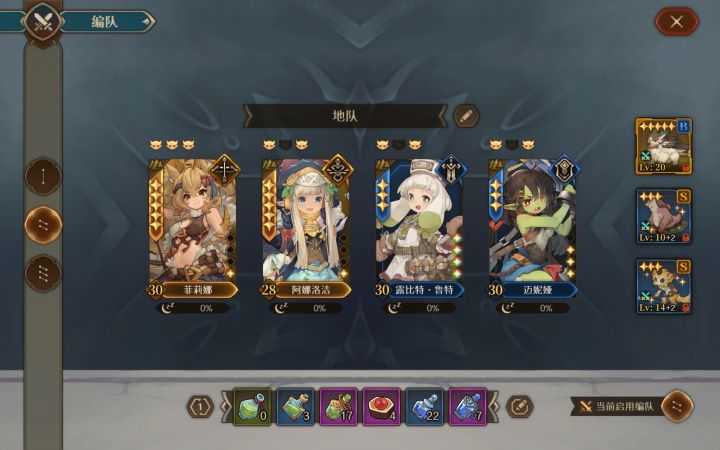 我是一代牧羊人之心的老玩家,这代前两测没参加过,所以一开始走了一些弯路,图二是我早期的编队,就是有五星用五星,后来上了论坛才发现高命三星比低命五星强多了(土弓除外,这伤害我真没看懂,本体就是强势),图三是我没土弓的时候,算是中期配队吧,西塔,风奶,大根子这三个必要,米拖拉和提沙哪个高星用哪个,因为前期伤害低,打到后面没蓝了很坐牢,因为吃药有毒性,不能多吃。图四就是有土弓了,直接拉起来就完事了,伤害