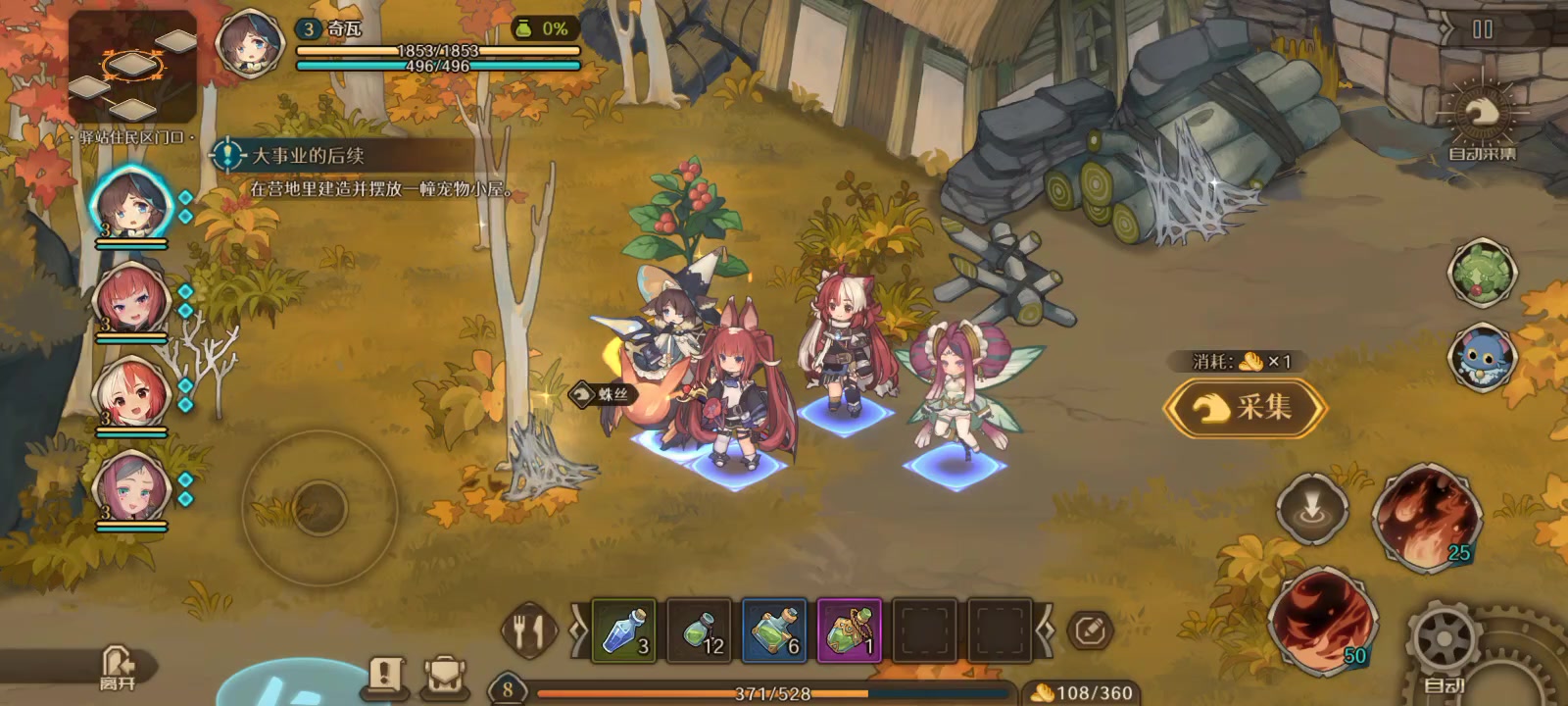 4个伙伴3个魔物,酷酷大乱斗…全程挂机。 哦对了,日常本有扫荡