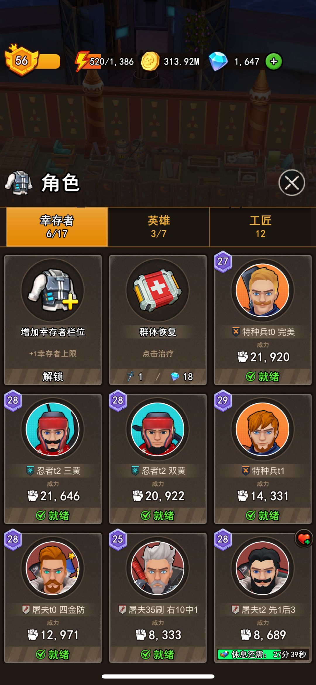 游戏昵称:zhonzia 昵称编号:zhonzia#45595 我的邀请码:24TBXWZMINV 本攻略仅代表个人观点,觉得对可以照抄,不喜勿喷。首先,在60级的时候我们可以招募18个幸存者,那该招募哪些呢?(5-6个肉、剩下全输出) 省流:2保镖、1斗牛、3屠夫、1潜行者、3游击、4特种兵、4忍者。 接下来讲一下原因: 战士类 保镖:便宜好用、刷图必备。 斗牛:后面版本有万血斗牛的玩法,可以留