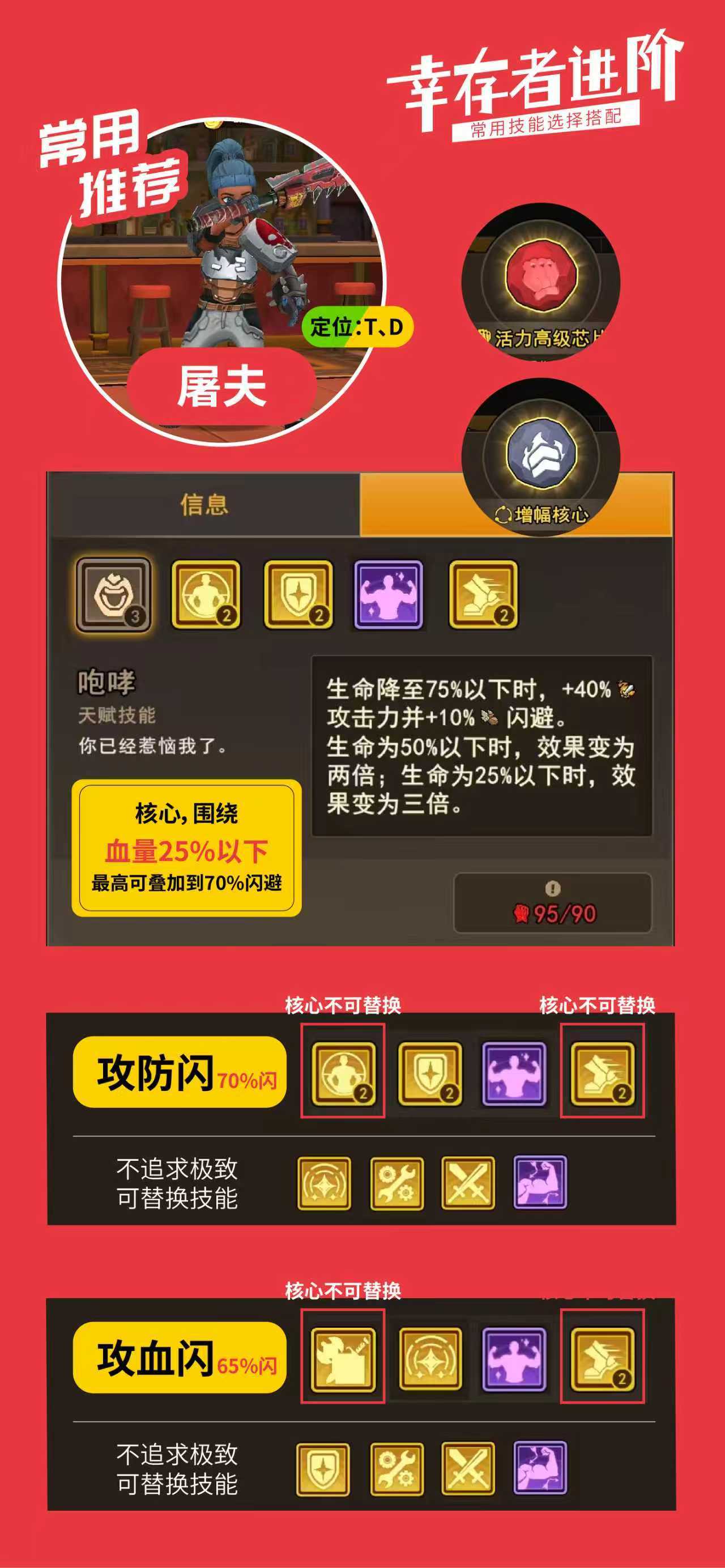 游戏昵称:zhonzia昵称编号:zhonzia#45595我的邀请码:24TBXWZMINV本攻略仅代表个人观点,觉得对可以照抄,不喜勿喷。首先,在60级的时候我们可以招募18个幸存者,那该招募哪些呢?(5-6个肉、剩下全输出)省流:2保镖、1斗牛、3屠夫、1潜行者、3游击、4特种兵、4忍者。接下来讲一下原因:战士类保镖:便宜好用、刷图必备。斗牛:后面版本有万血斗牛的玩法,可以留