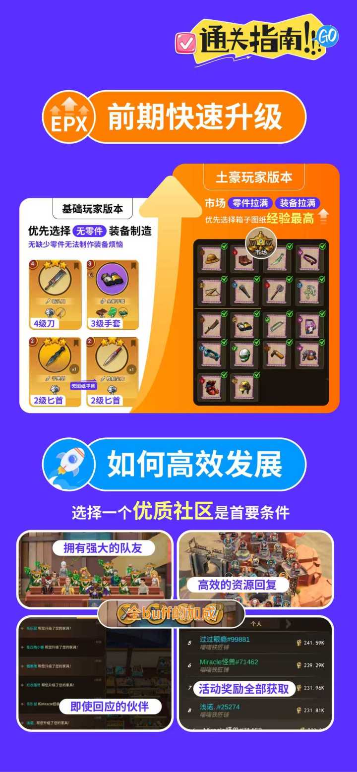 #攻略 发帖人:Miracle怪兽#71462初入游戏,结合自己本身情况这里提供了两种不同的思考方式供君选择【快速升级】刚开始进行游戏,最容易碰到材料短缺,没装备售卖的情况,这里对于初入游戏的玩家都会碰到的问题,这里给大家提供了2-4阶装备免材料的思路,同时对于相对来说已经初步了解是玩家,也指出了前期什么类型的装备经验最高,更快售卖的获取经验。【社区玩法】一个好的社区可以带了什么