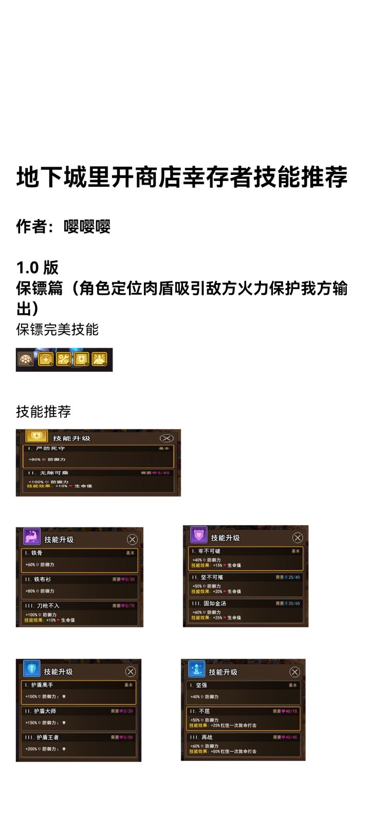 游戏名:≥﹏≤ID:≥﹏≤#93892 地心活动每月只有一次,所以地心很珍贵。各位店长可以适当卡级获取地心。幸存者最好有一个史诗技能再考虑培养。幸存者技能推荐保镖技能推荐:有金盾,其他防御技能都可以使用,特点肉盾保护输出。特种兵技能推荐:枪械和交火最好,其他攻击类技能都可以使用,特点高伤害好成型雇佣兵技能推荐:近战和神射最好,其他攻击,暴击,爆伤,闪避类技能都可以使用,特点高爆高闪