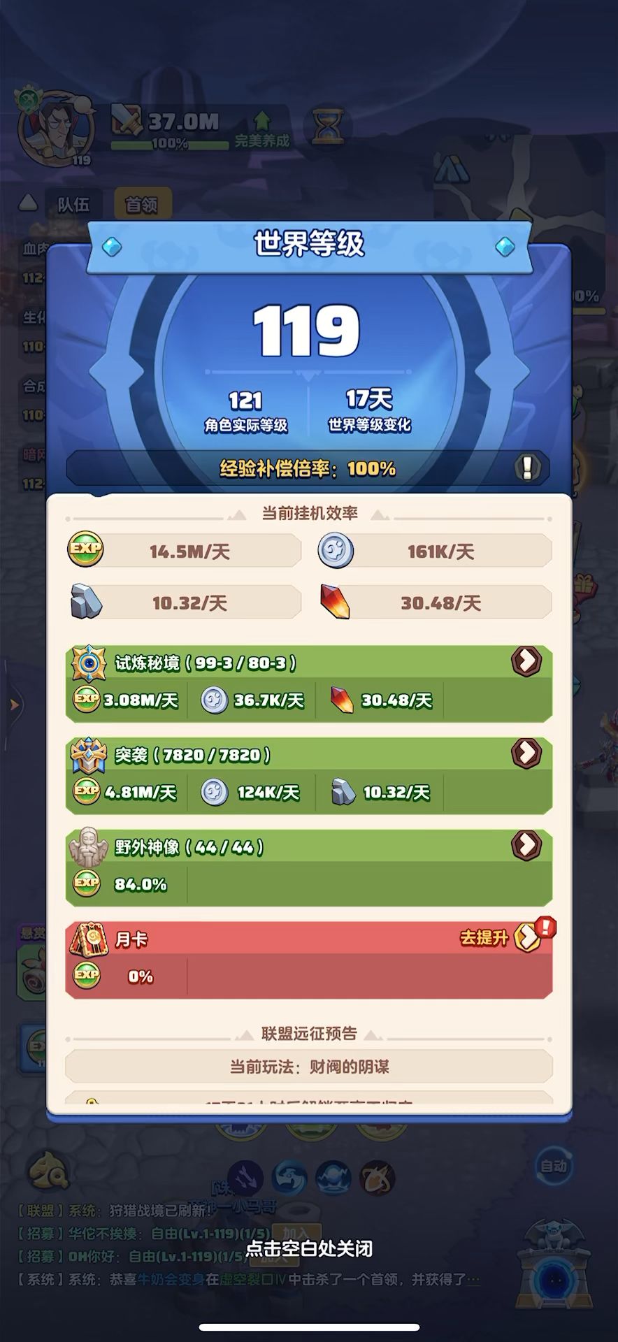 #勇者联盟 119级,战力37m,攻评130万,秘境98-9,本服排名第1,合服排名第2