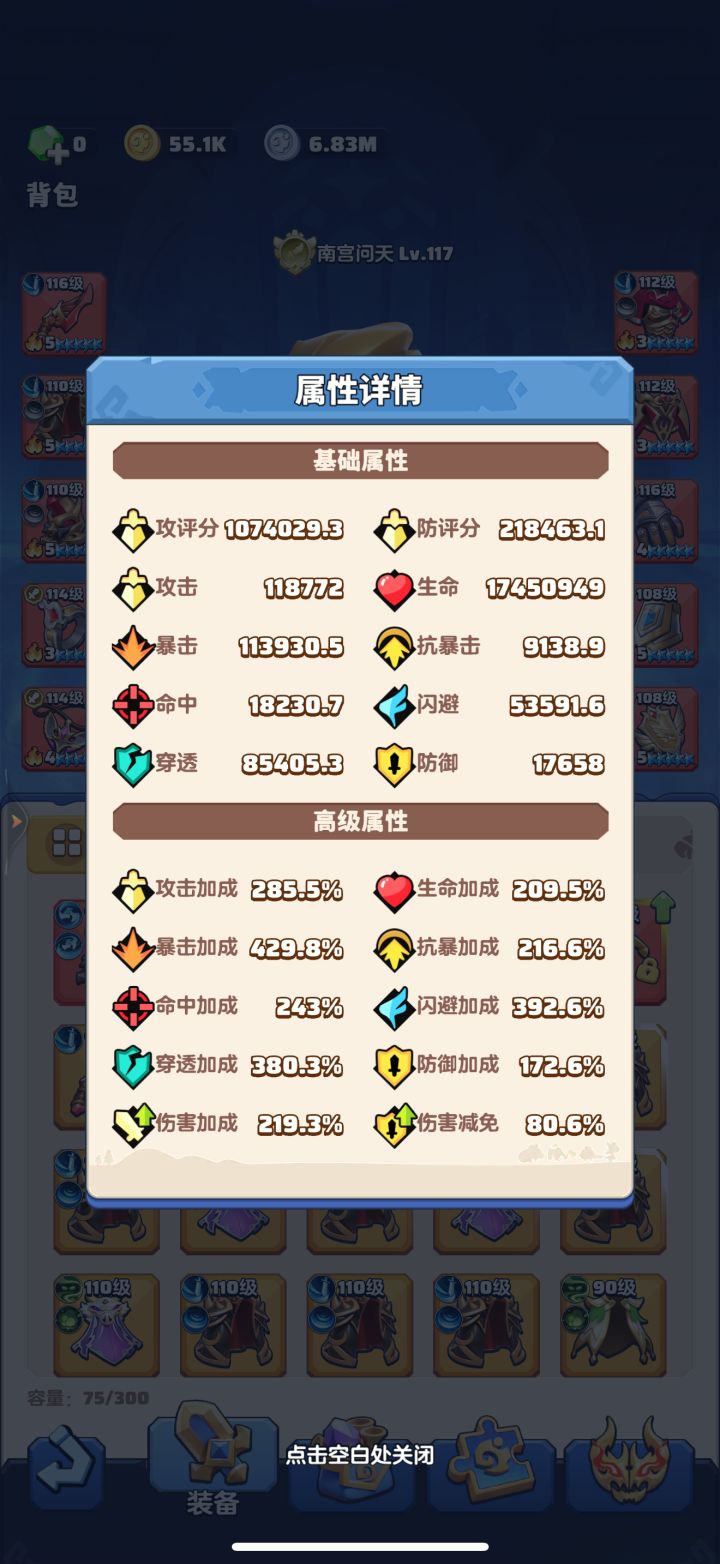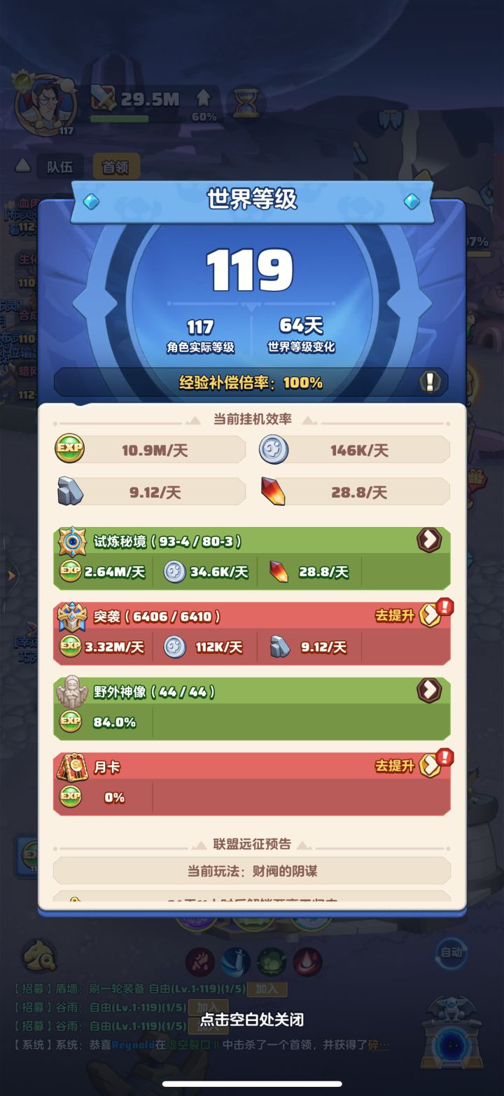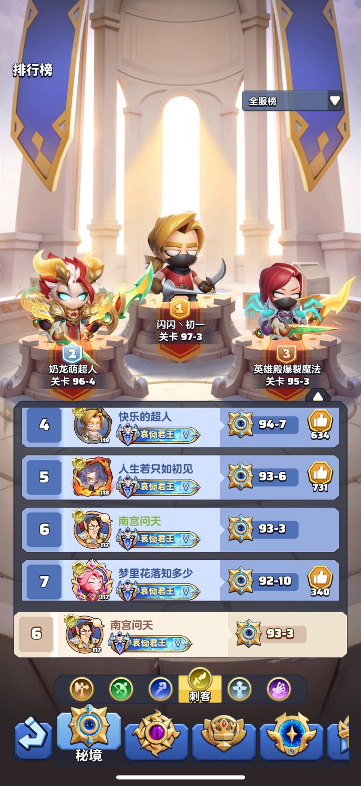 #勇者联盟 117级,战力29.5m,攻评107万,秘境93-3,本服排名第3,合服排名第6