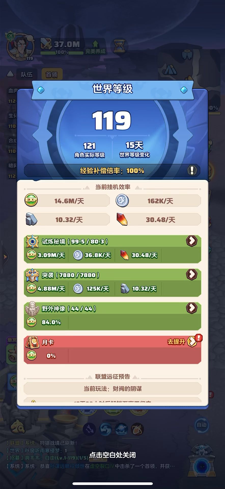 #勇者联盟 119级,战力37m,攻评130万,秘境99-4,本服排名第1,合服排名第2