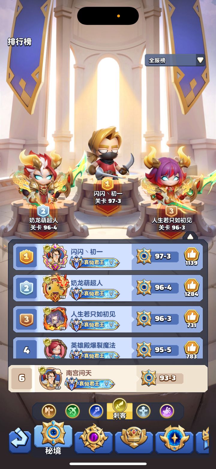 #勇者联盟 117级,战力29.8m,攻评107万,秘境93-3,本服排名第3,合服排名第6