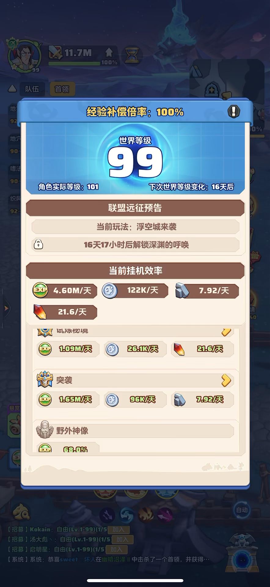 #勇者联盟 99级,战力11.7m,攻评407162,秘境58-7,本服排名第1,合服排名第3