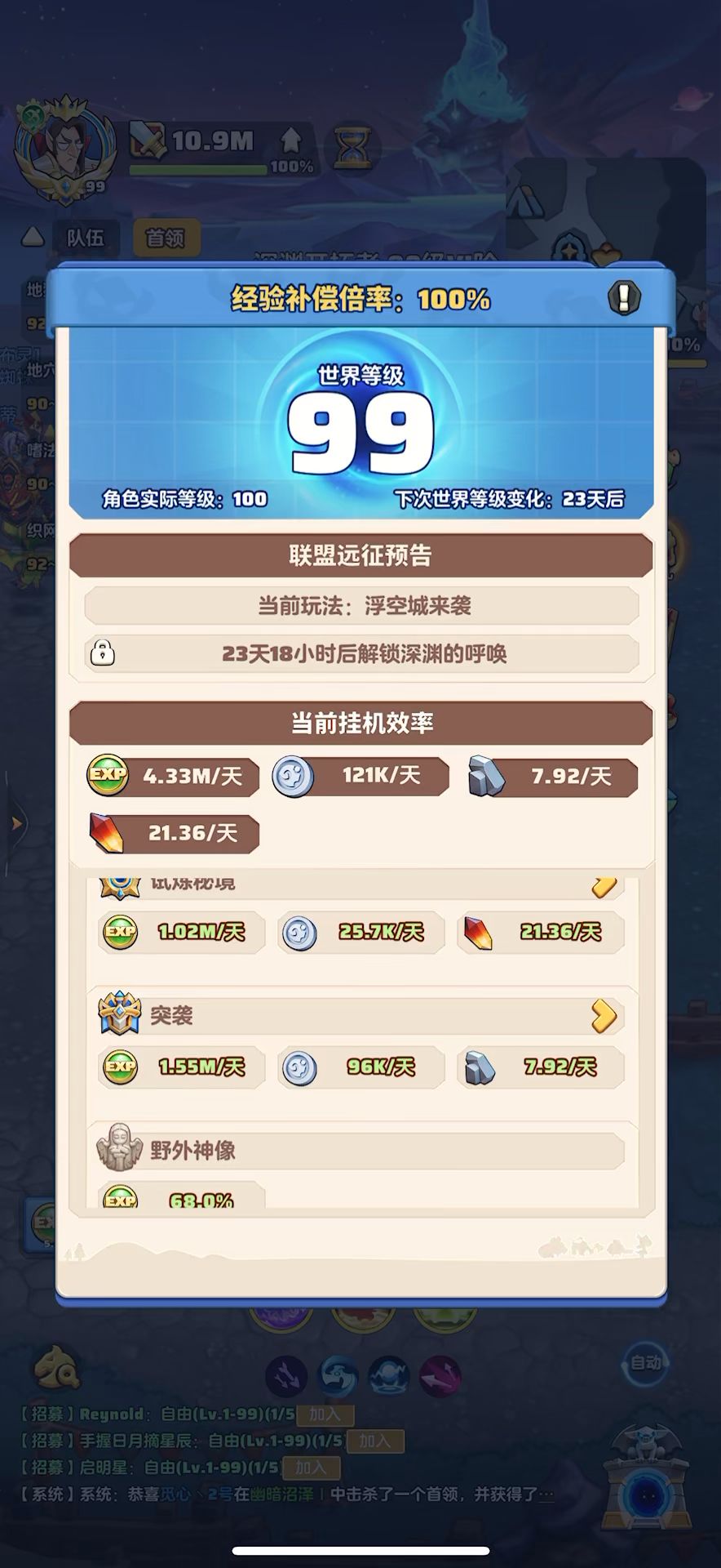 #勇者联盟 (神谕宠物染色过期)99级,战力10.7m,攻评373501,秘境56-1,本服排名第1,合服排名第2