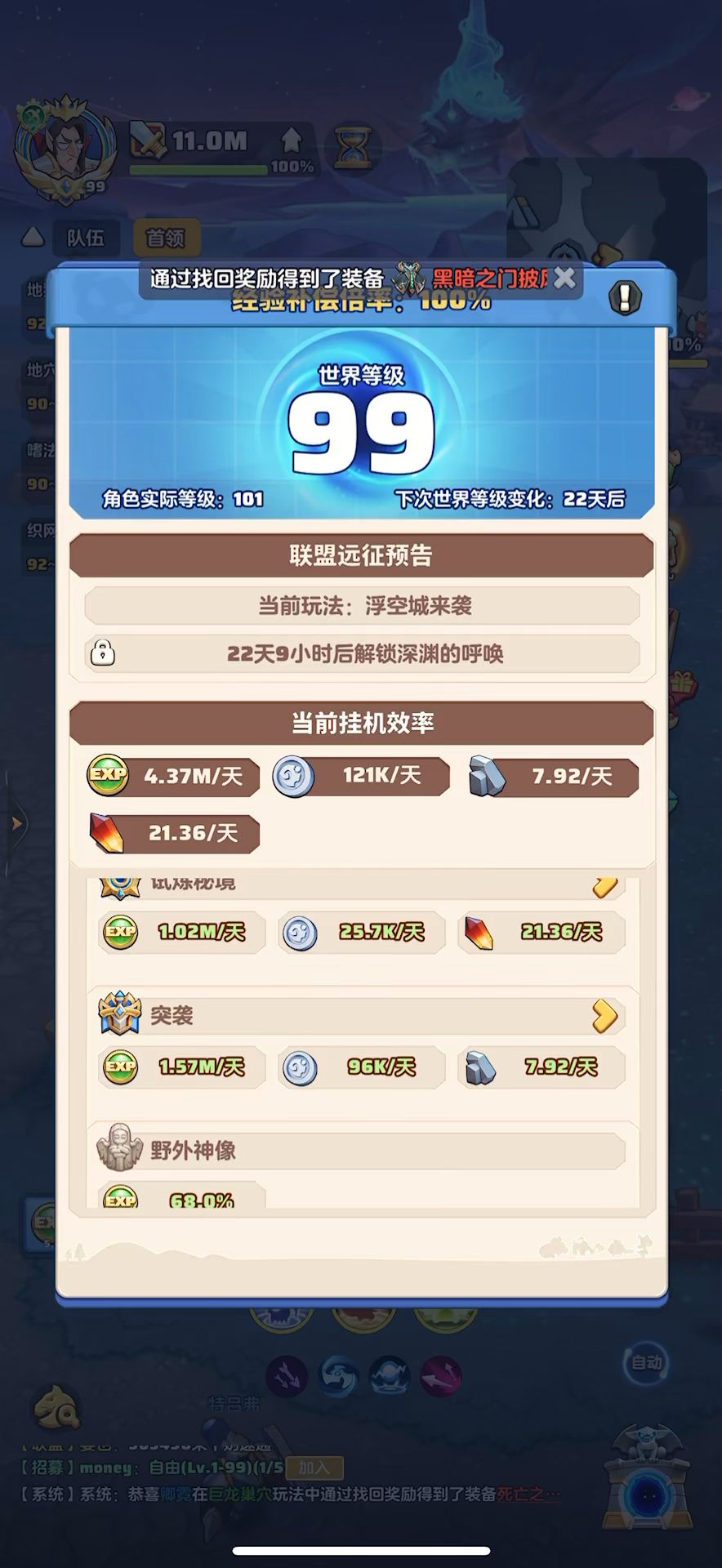 #勇者联盟 99级,战力11m,攻评381110,秘境56-5,本服排名第1,合服排名第2