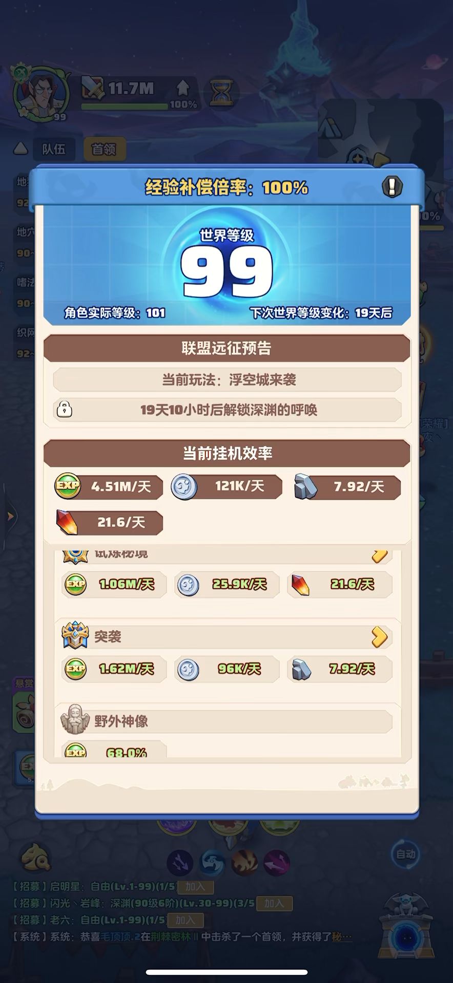 #勇者联盟 99级,战力11.7m,攻评407116,秘境58-4,本服排名第1,合服排名第4