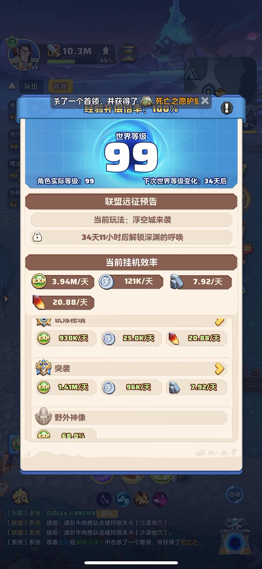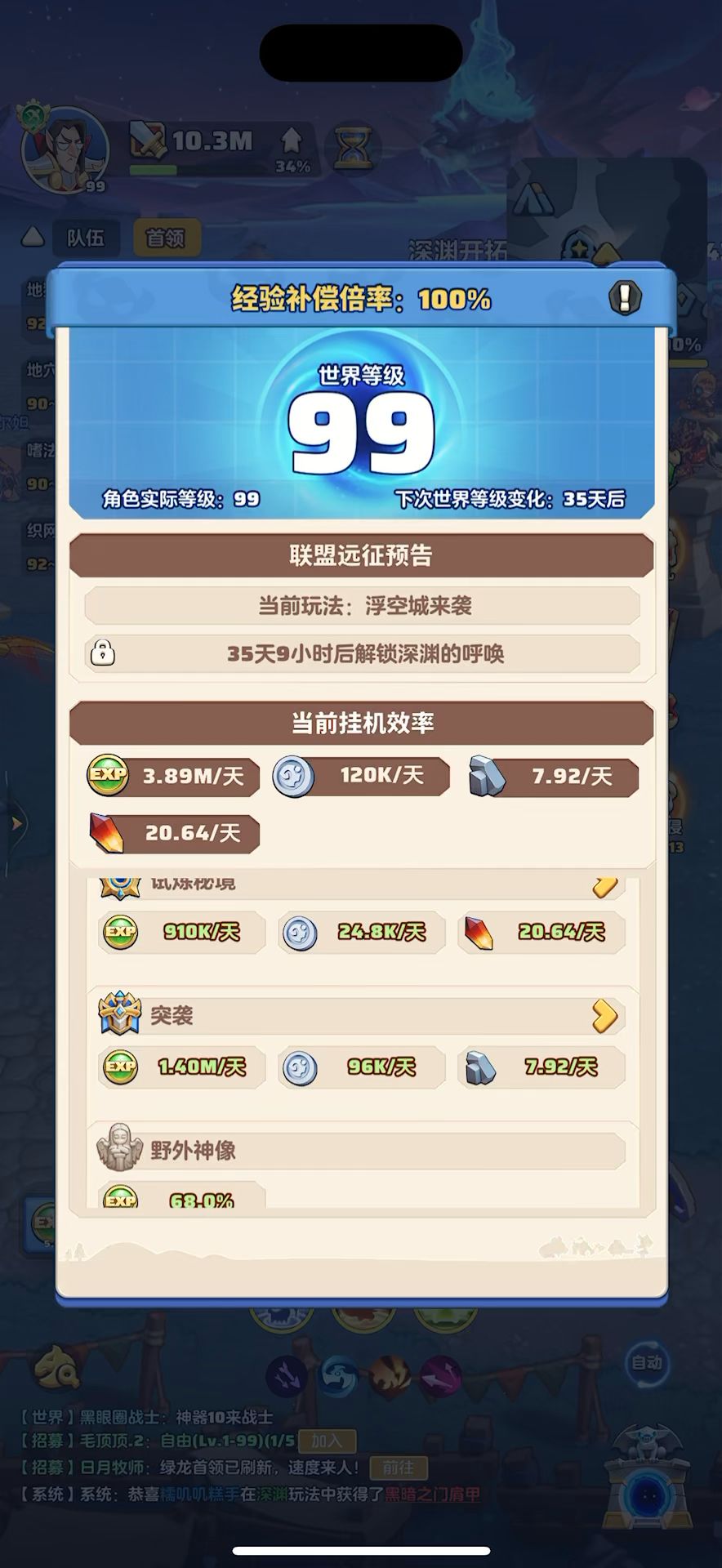 #勇者联盟 99级,战力10.3m,攻评353826,秘境51-7,本服排名第1,合服排名第6