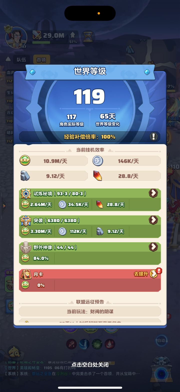 #勇者联盟 117级,战力29m,攻评106万,秘境93-2,本服排名第3,合服排名第6,零氪难度首次达到1000%!