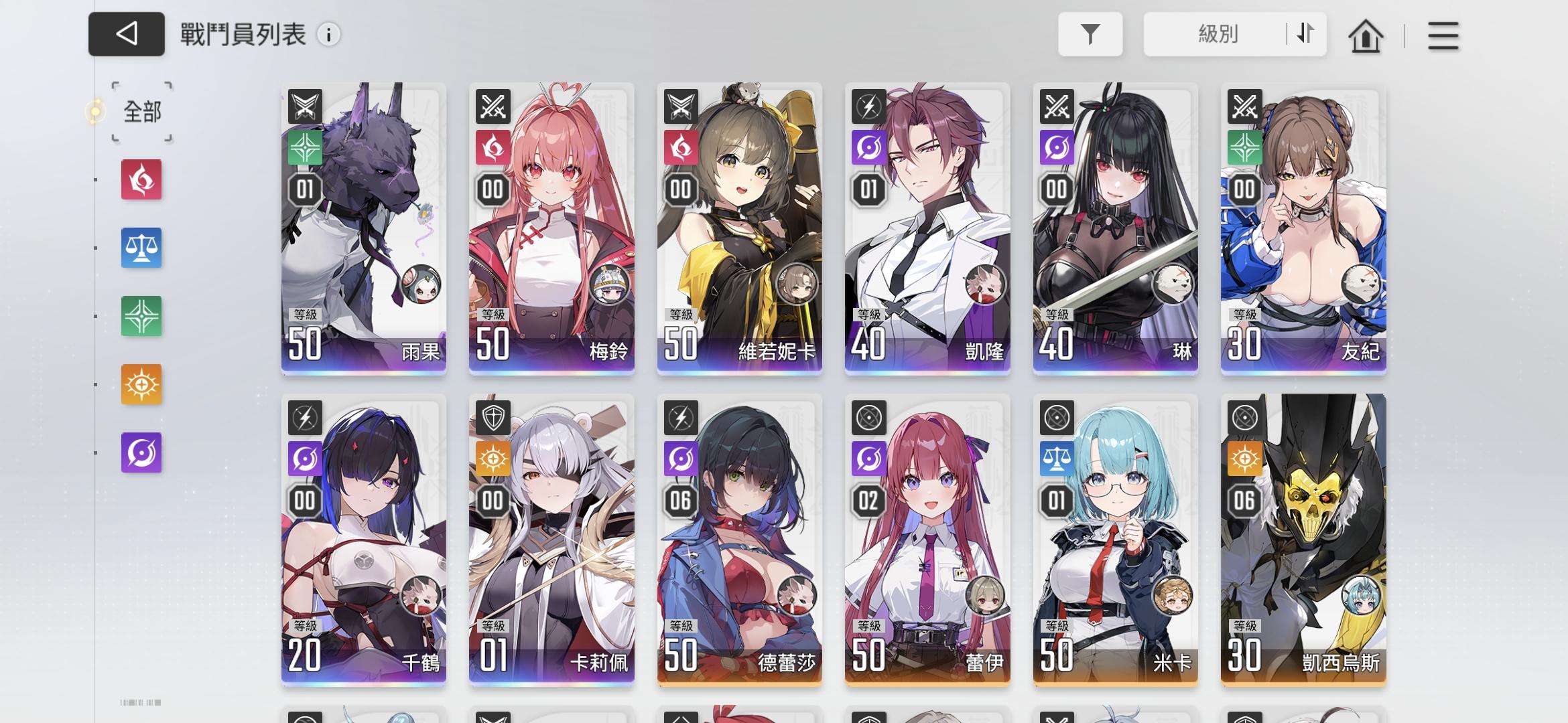 这个号国际服玩到现在差不多20多天,能挖的钻和抽挖了95%吧。零号的成就还没挖完,挖完能再多个一千来钻,实在是不想打了。这个号抽的很少,五星就一个狼哥和新手池子出的冰狼。两队一队狼刀,一队百丽。高难本都过了,周本难10,活动难11啥的。属于是可以抽但是没必要,准备到时候看看千鹤什么强度统计下这个号玩到现在资源累计情况:钻:27913,40之前有两三天体力是拉满的,零号也有几天是