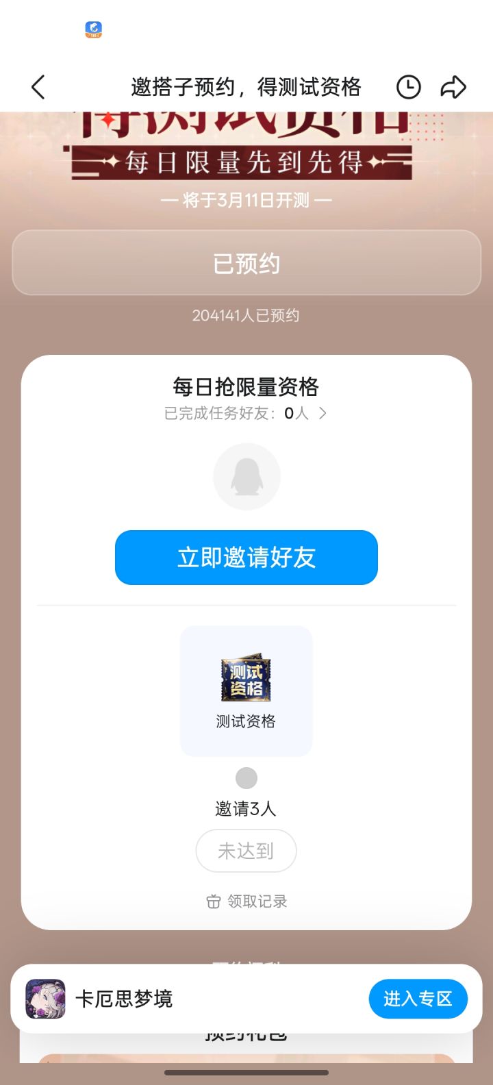 接收到TapTap的特别信号■■■■■■信号发送中■■■■■■亲爱的领航者——《卡厄思梦境》「深潜者」测试TapTap特别招募活动正式开启!------------------------------------------------特别招募期开始时间:2026年3月4日 10:00(UTC+8)结束时间:2026年3月9日 9:00(UTC+8)招募资格获取方式方式一:点击特