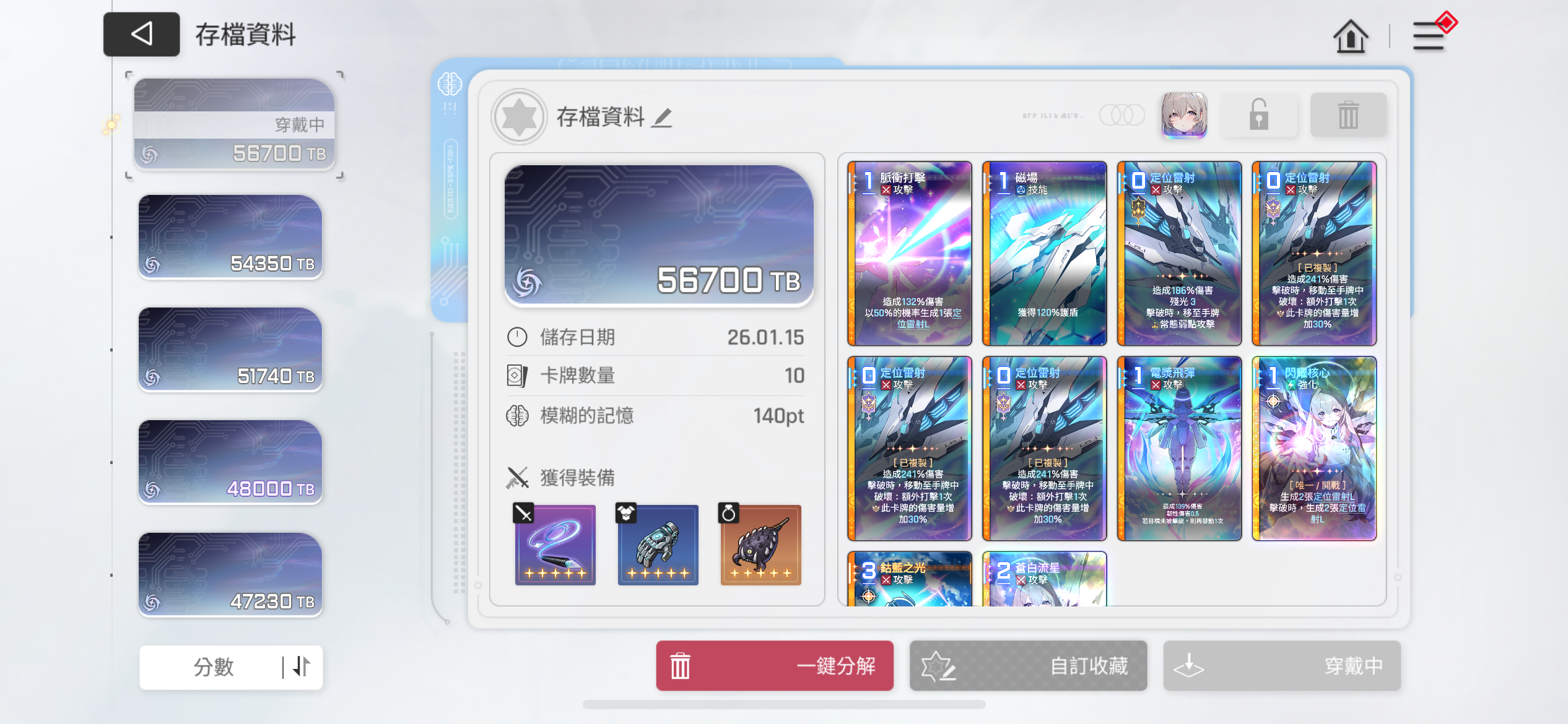图片1:卡组核心,复制两张提高入手率即可(初次复制0pt),该卡回合可以多次使用叠加,2张卡的情况下配合过牌队友可以做到全场战斗稳定覆盖图片2:核心功能辅助卡,仅搭配破韧角色(天使)时利用率和功能性最大,可以复制2张(二次复制10pt),提高入手率和使用率即可,多张同类卡牌会影响卡组库存占用,并占据手牌上限图片3:条件限定卡,仅破防后,怪物有对应弱点或者被挂弱点状态可触发,搭配天使的电浆飞弹普