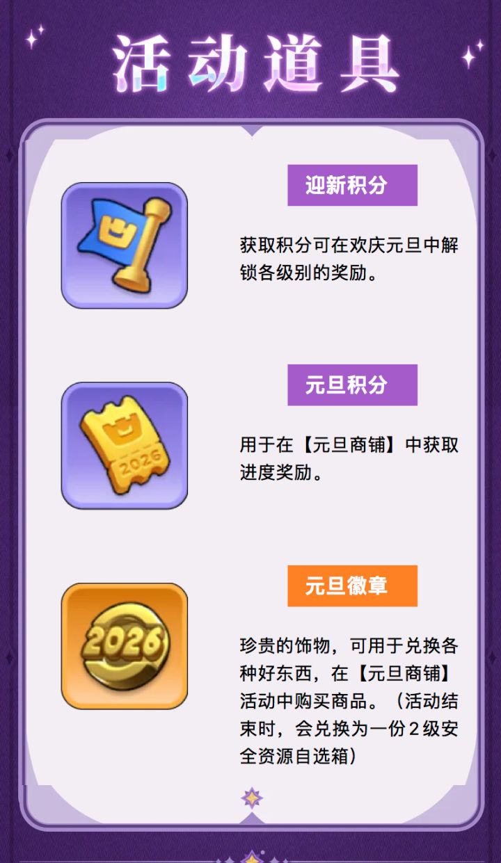 亲爱的领主:岁序更迭,万象焕新。未来的序幕正悄然拉开,愿你我执笔书写各自的星辰与远方。活动时间:2025年12月31日 00:00:00至2026年1月4日 23:59:59(北京时间)杰贝尔这里给看完的领主送给小兑换码,元旦当天还有节日兑换码哦~🔑 兑换码:BBWG1230⏰ 有效期至:2026年1月1日 23:59:59✨ 兑换要求:城镇中心等级 ≥ 9级注:部分活动和功能首